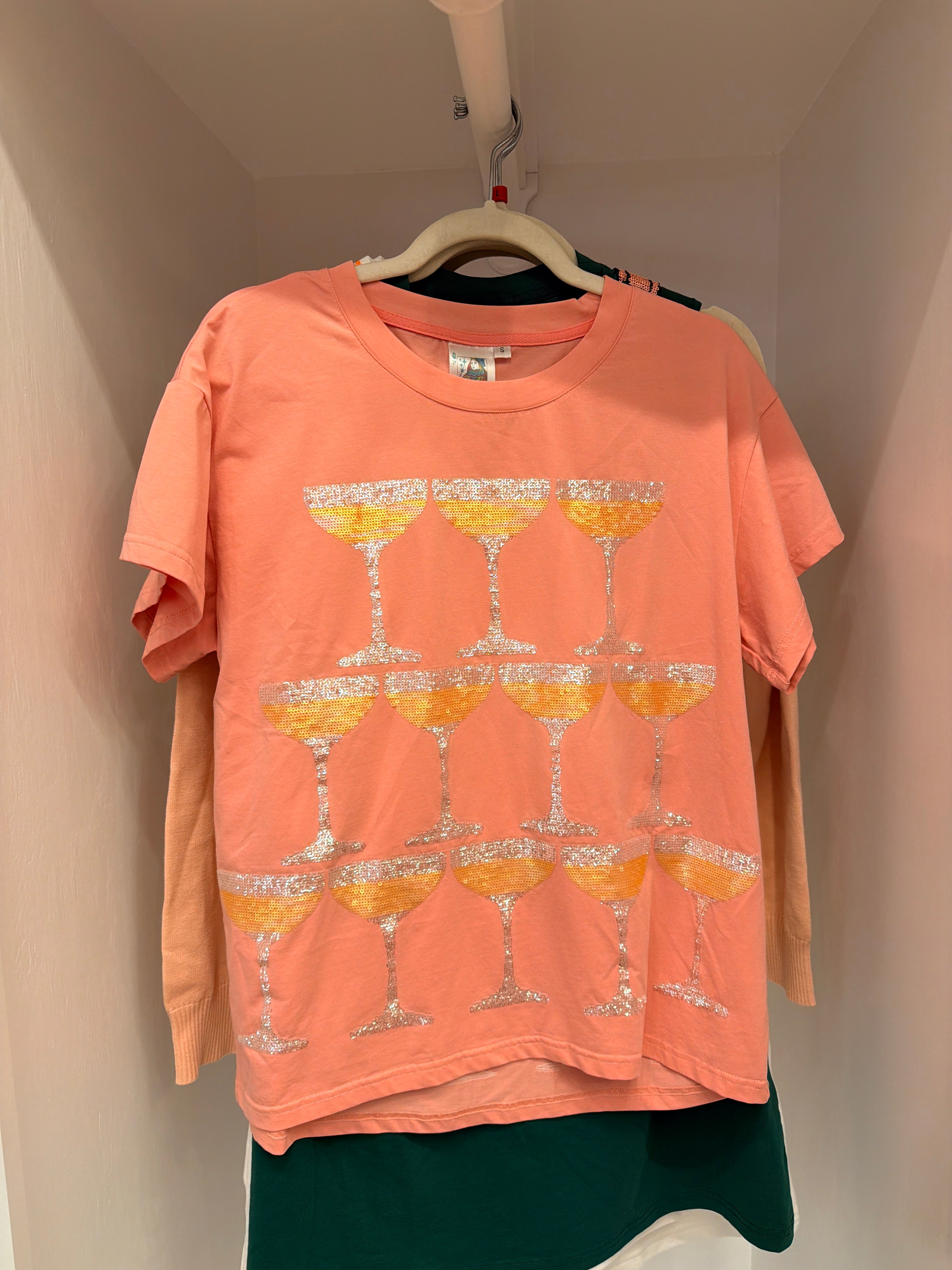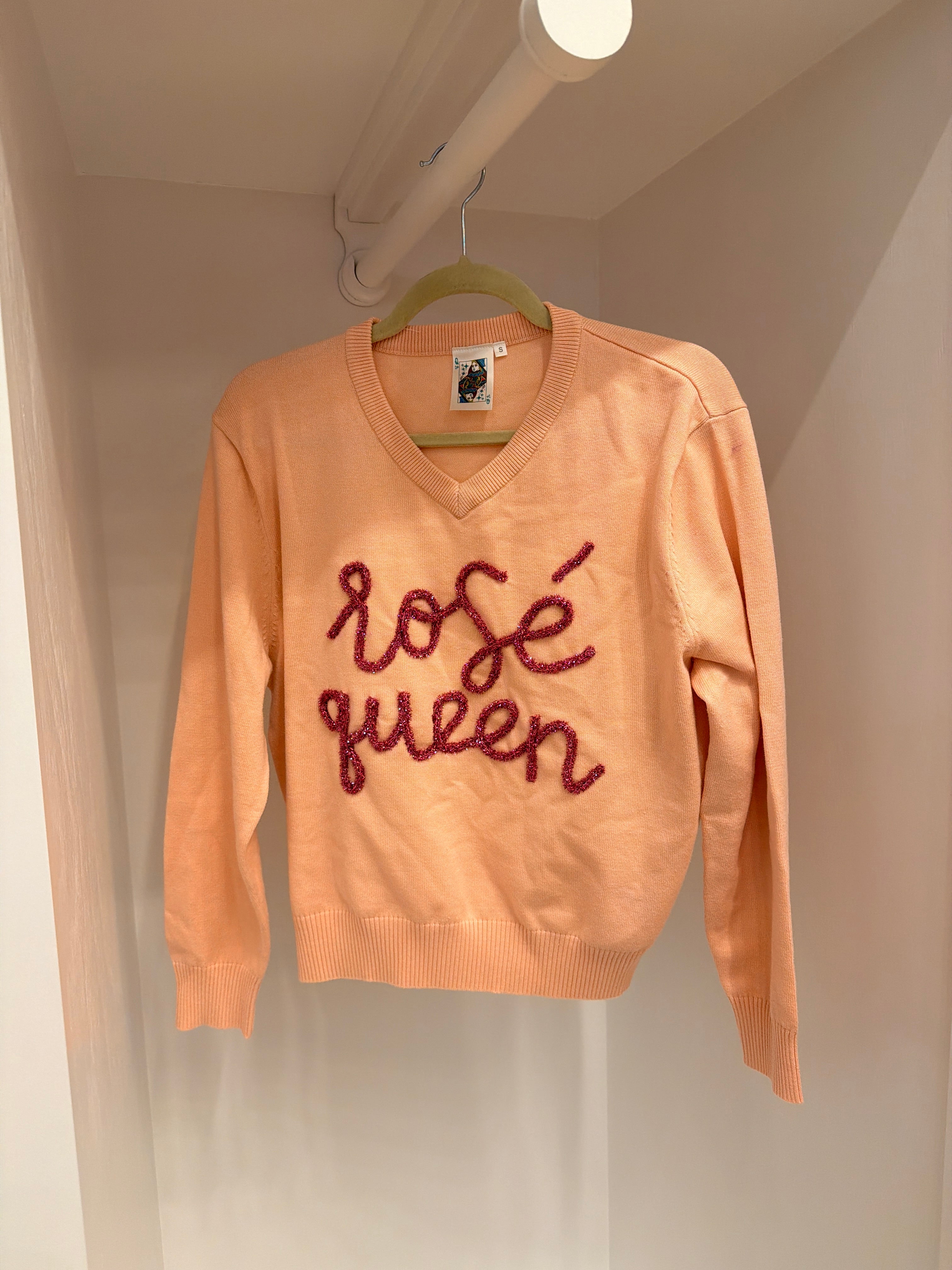 Lulu-B Wine Time Coral Pink Scoop Neck Embroidered Sweater