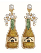 Gold Pearl & Rhinestone Champagne Bottle Earrings