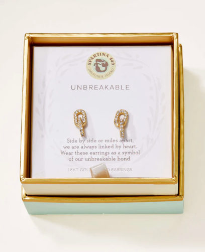 Wear our Unbreakable Earrings as a reminder of an unbreakable bond. Featuring glass crystal studded links, these earrings come packaged inside a beautiful box with the message: "Side by side or miles apart, we are always linked by heart. Wear these earrings as a symbol of our unbreakable bond."