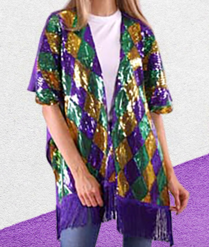 Mardi Gras Sequin Tassel Kimono Poncho