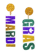 Mardi Gras Theme Glitter Earrings