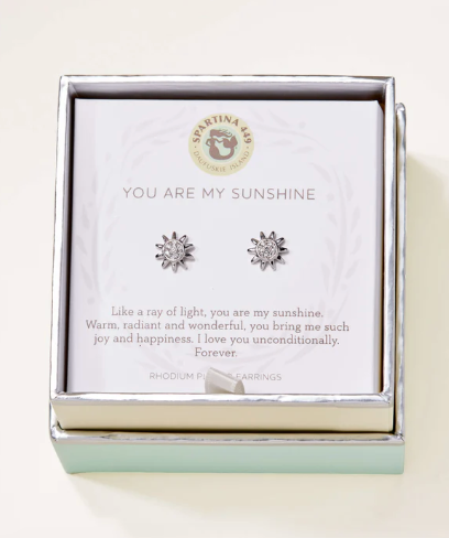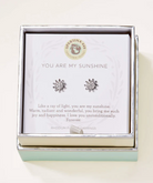 Wear our Sunshine Earrings as a reminder of unconditional love. Featuring glass crystal studded sunshine studs, this special piece comes packaged inside a beautiful box with the message: "Like a ray of light, you are my sunshine. Warm, radiant and wonderful, you bring me such joy and happiness. I love you unconditionally. Forever."