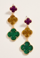 Triple Glitter Mardi Gras Quatrefoil Drop Earrings