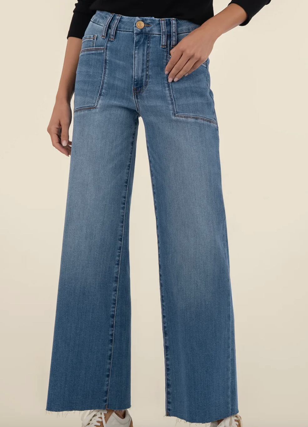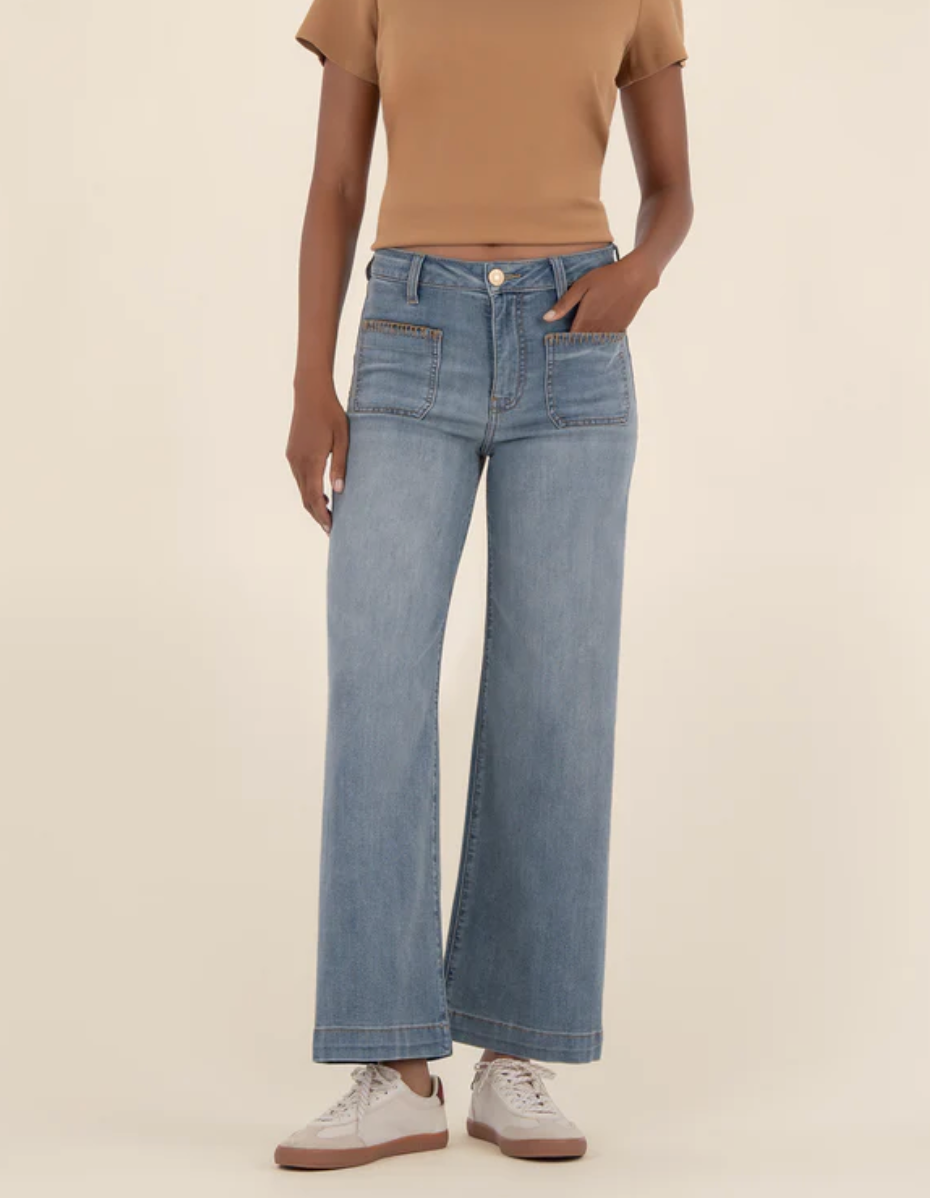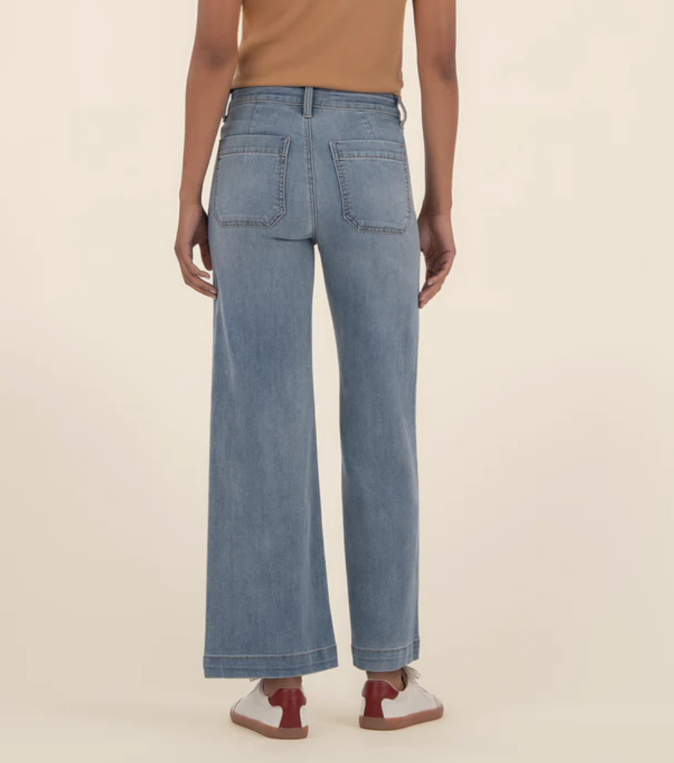 Meg Advantaged Wash High Rise Wide Leg Jeans W/ Pork Chop Pockets- KUT
