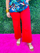 Meg Ruby Red High Rise Wide Leg Jeans - KUT