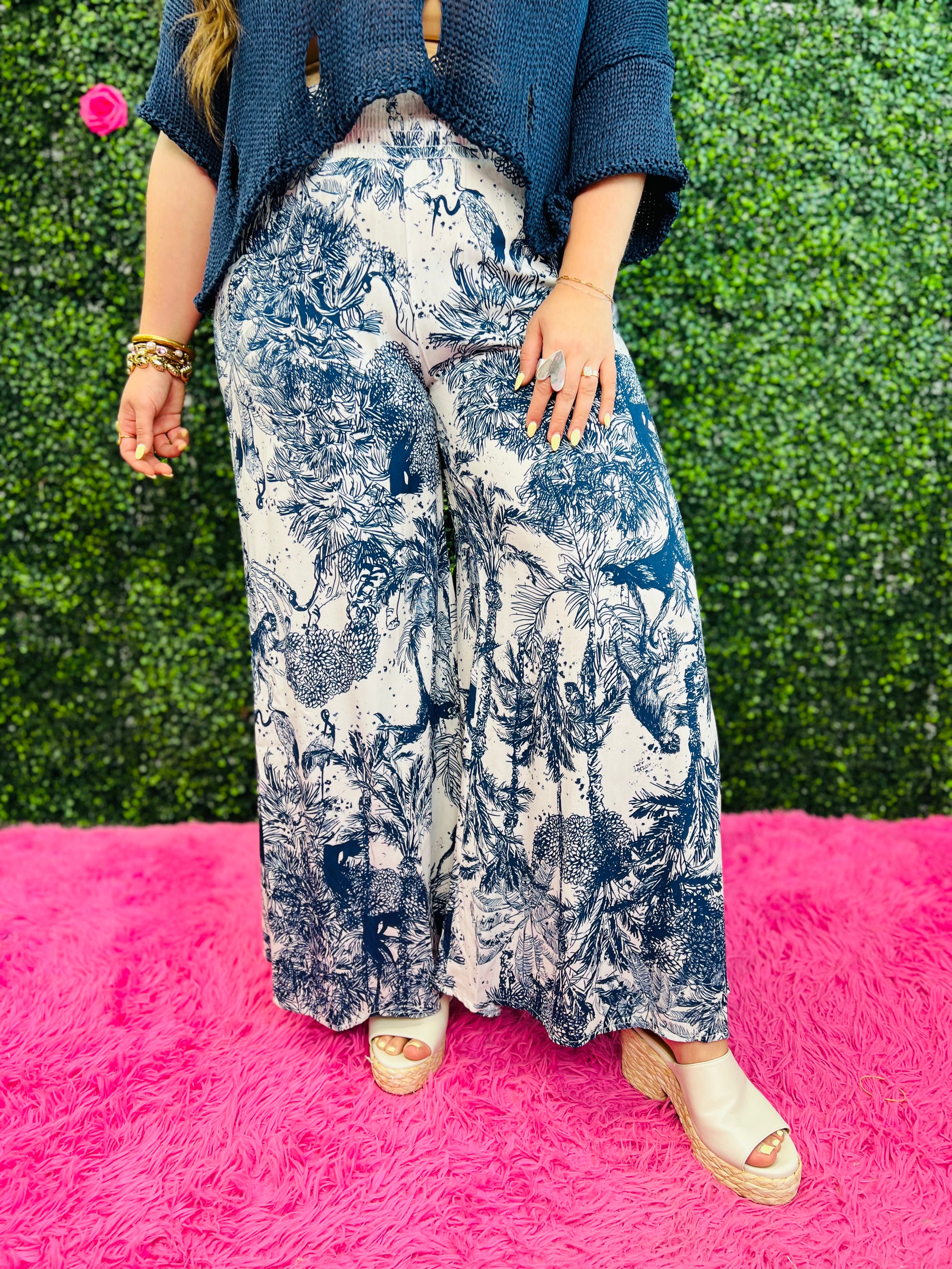 Warm, tropical breezes and the taste of salty air comes to life in this sun-filled print. The Micah pants features a voluminous wide-leg ankle-length cut and a high-rise elasticated waistband to fully embrace your vacation state of mind.