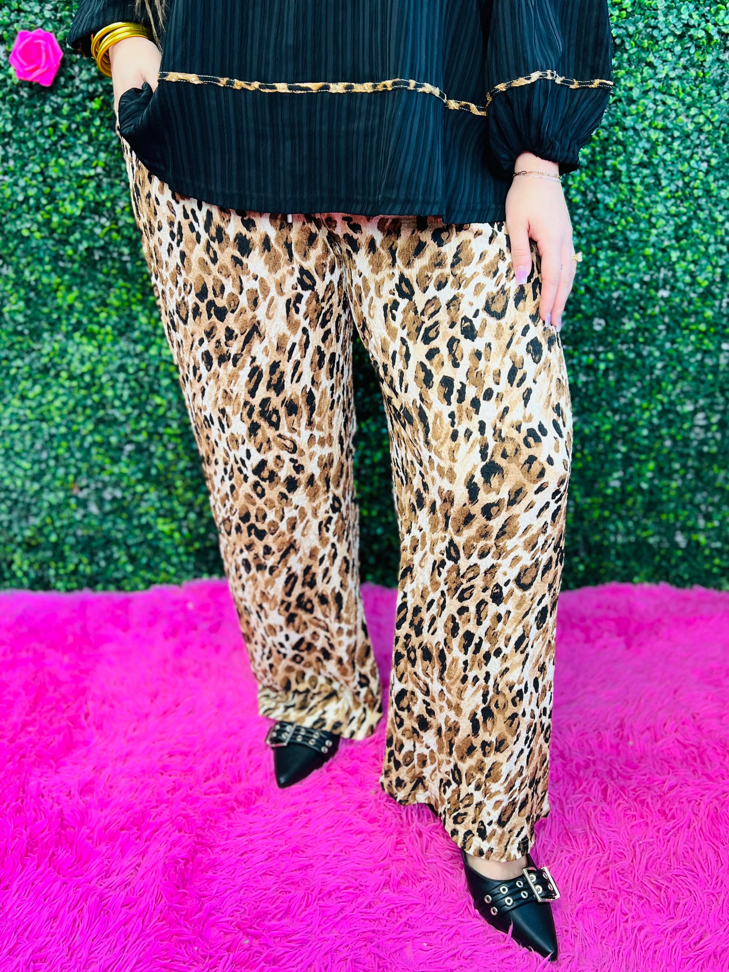 Unleash your bold side with the Something Wild Pants. Featuring a chic leopard print, these versatile pants effortlessly blend playful and flirty vibes, perfect for adding fun to any outfit. Whether dressing up or down, they promise comfort and style all day long!