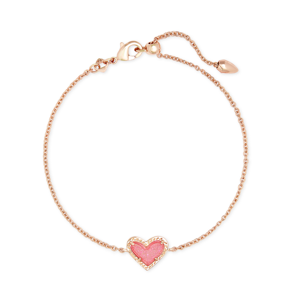 Ari Heart Rose Gold Delicate Chain Bracelet in Pink Drusy - Kendra Scott