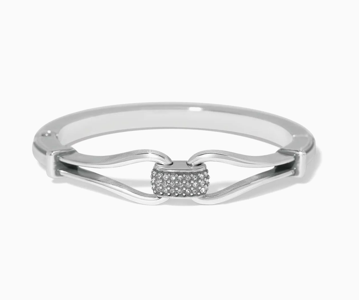 A touch of sparkle on each barrel station of pave fine quality crystal lends elegance to this classic hinged bangle.