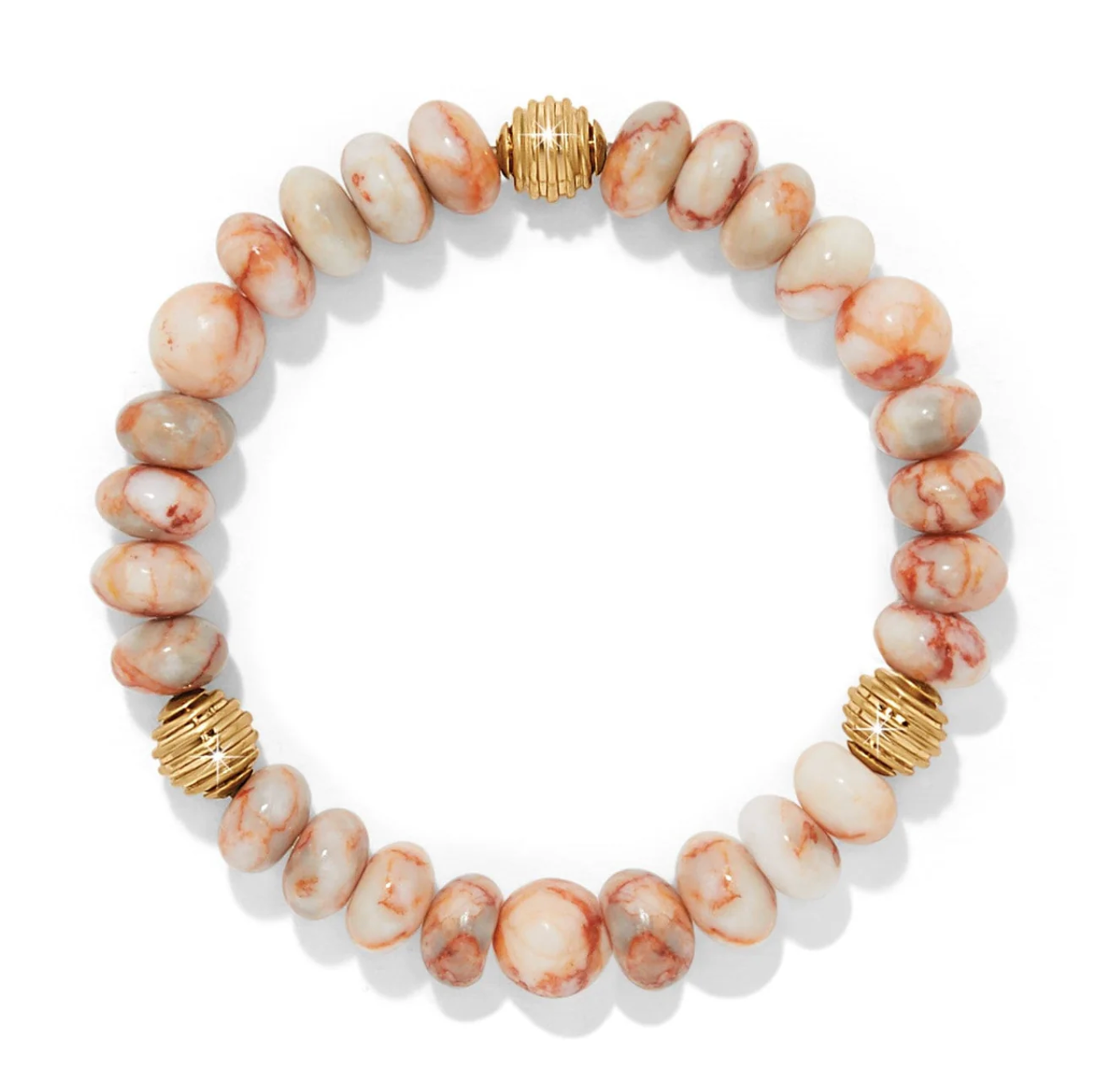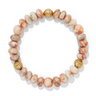 Natural red web jasper round beads and golden beads make this comfortable stretch bracelet flattering to all skin tones.