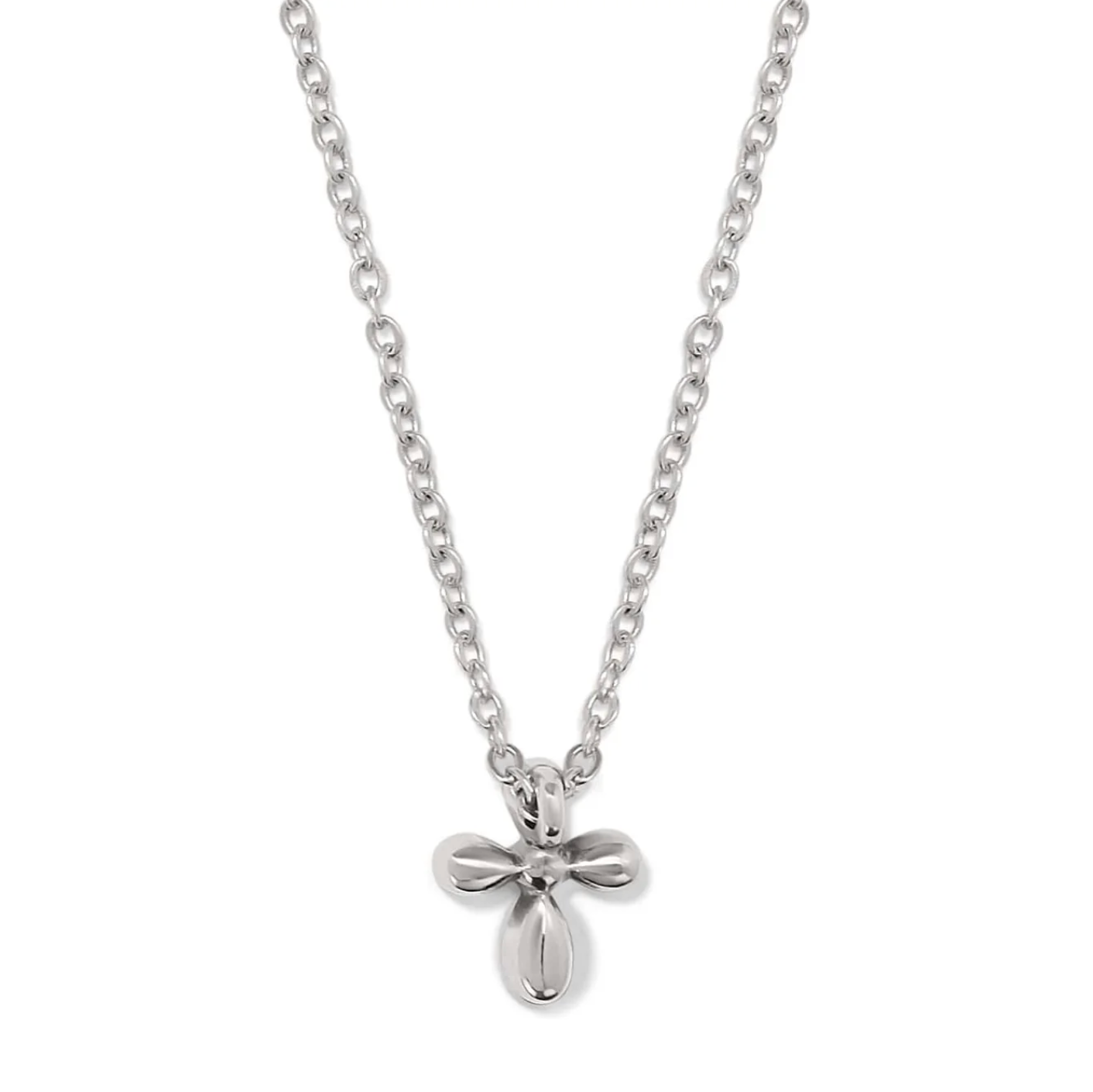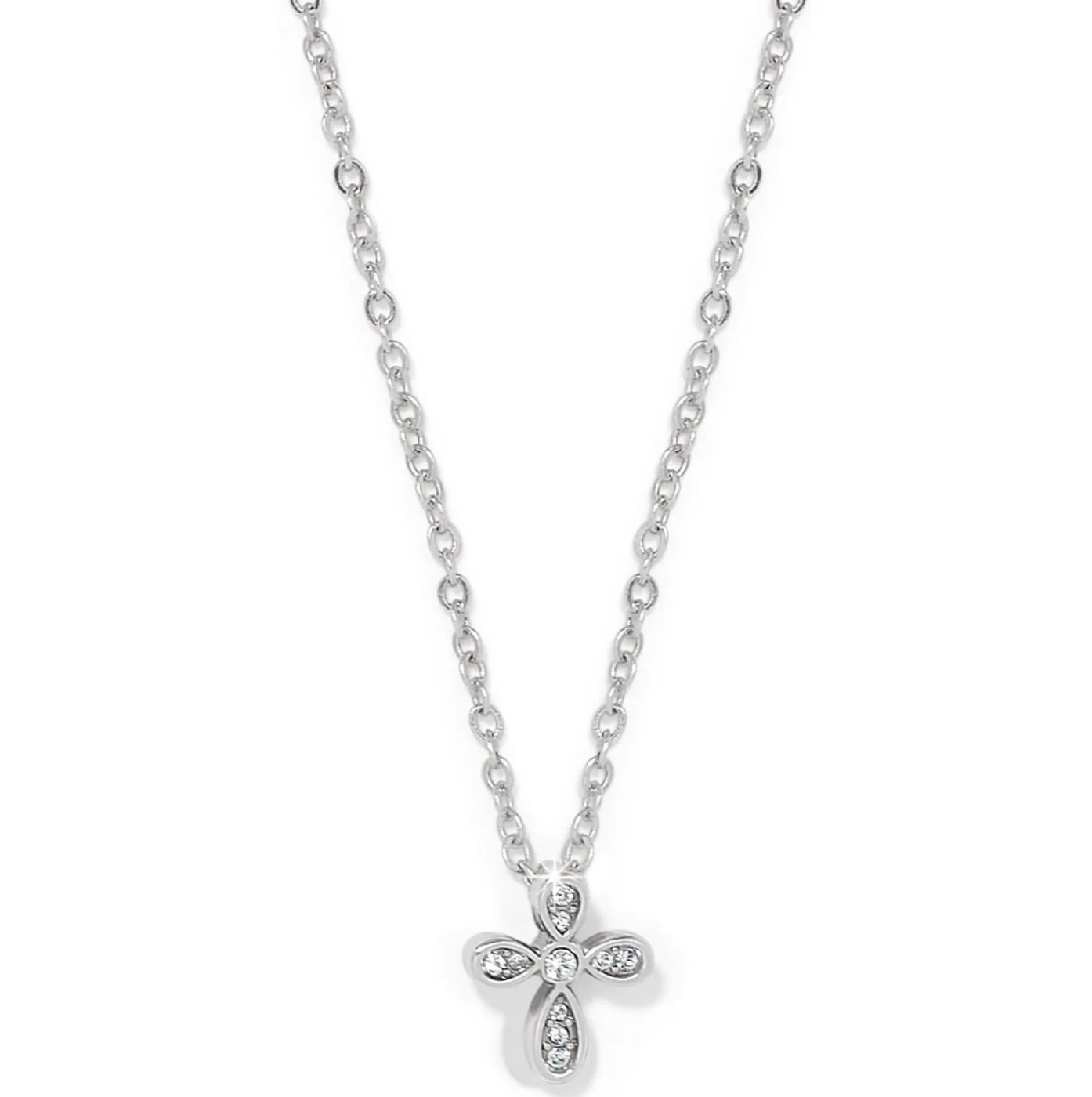 Petite jewelry makes its own statement with this delicate symbol of devotion capped with artisan hand-set crystals.