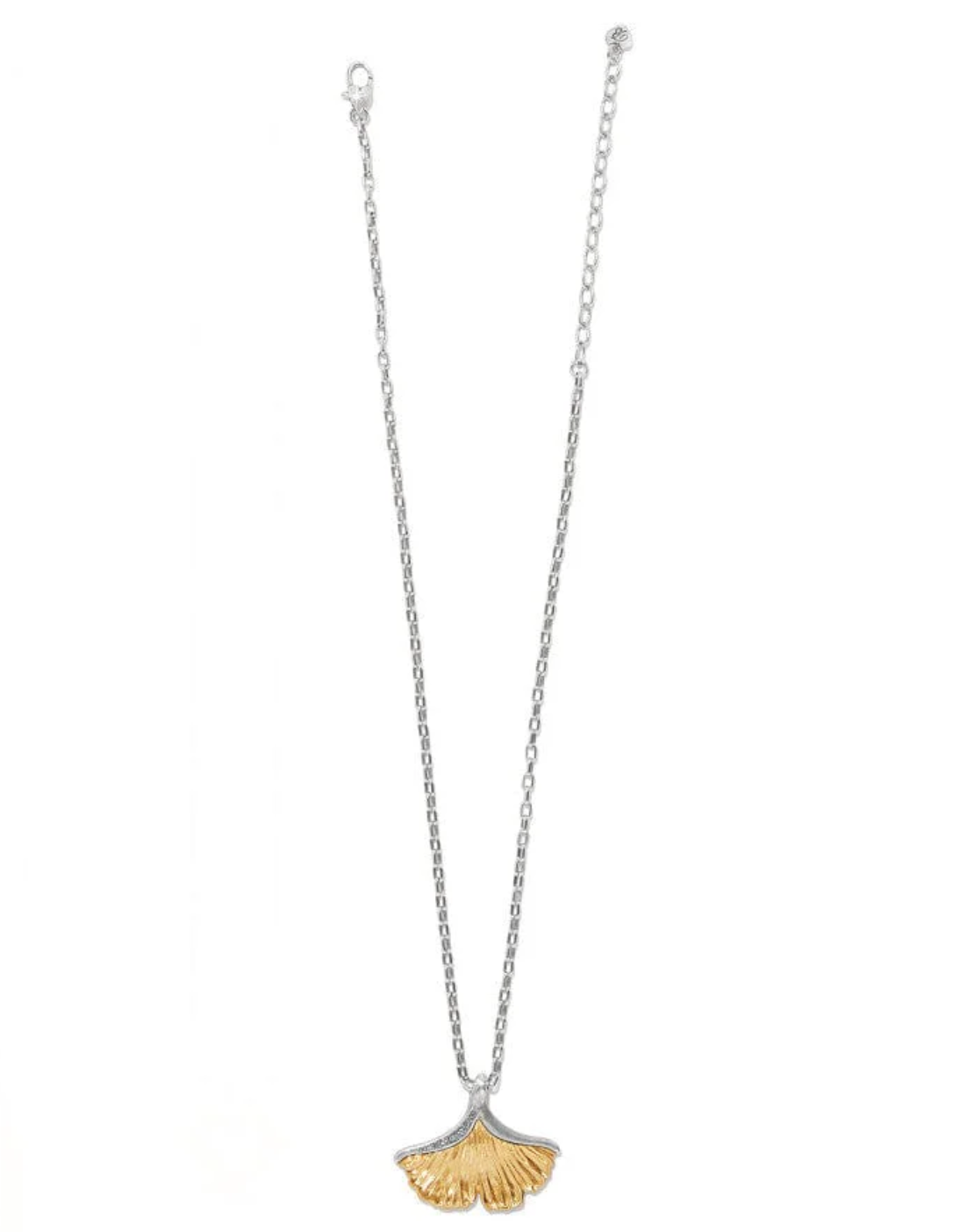 The tree on which the leaf grows - the ginkgo tree - is native to Southeast Asia, and now flourishes in parts of the United States as well. When the leaves finally do fall, the tree always attracts an audience – you’ll attract attention as well whenever you wear this necklace that reflects the beauty of the gingko leaf in metal form.