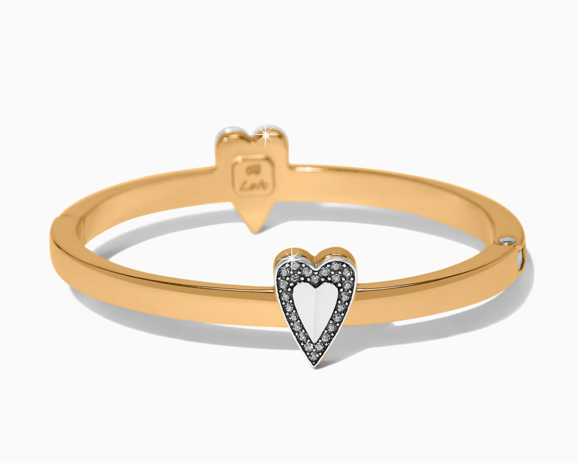 The perfect start to a mixed metal bracelet stack, this subtle and romantic heart motif bangle will encircle your wrist beautifully.