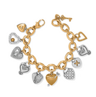 Ten gorgeous hearts in two-tone. silver and gold dangle from this charm bracelet on a cool modern chunky chain.