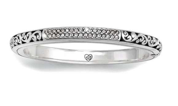 With gorgeous piercings and rhinestones, this bangle looks sensational when layered with the Sacred Heart bangle.