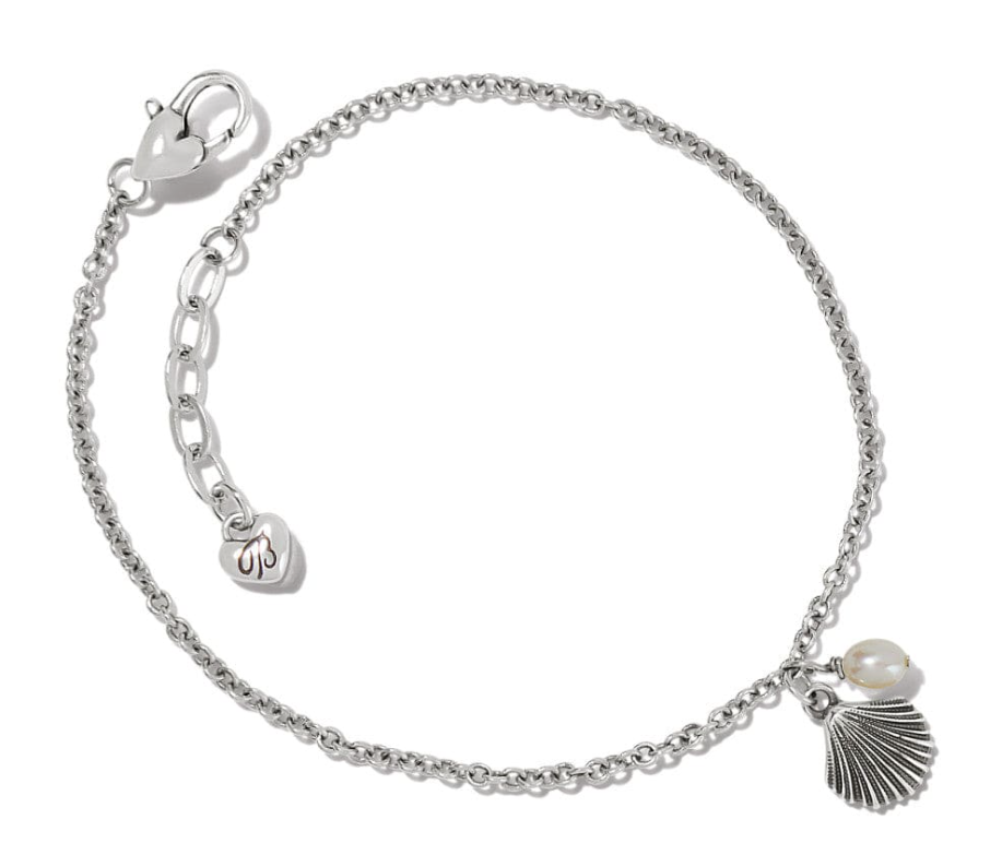 Get the beach vibes going with an anklet dangling a beautifully etched silver shell ornament.