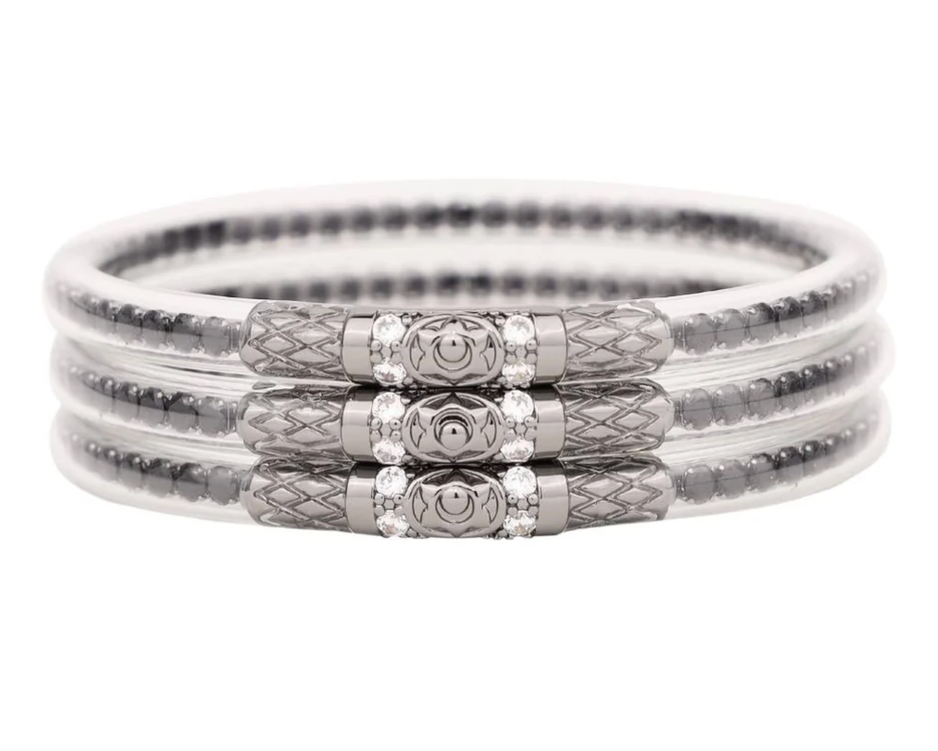 Time is an ingredient of perfection and our Black Spinel Three Queens AWB® are a proof often years of perfecting our craft. BuDhaGirl brings forth a tube of the most exceptional clarity housing a chain of tiny black spinel crystals paying tribute to the sparks of flint. The beautiful Lotus Queen bead, is a testament to fine jewelry artistry as it is ensconced in a fabulous modern shade of gunmetal, showcasing our dedication to both tradition and modernity.