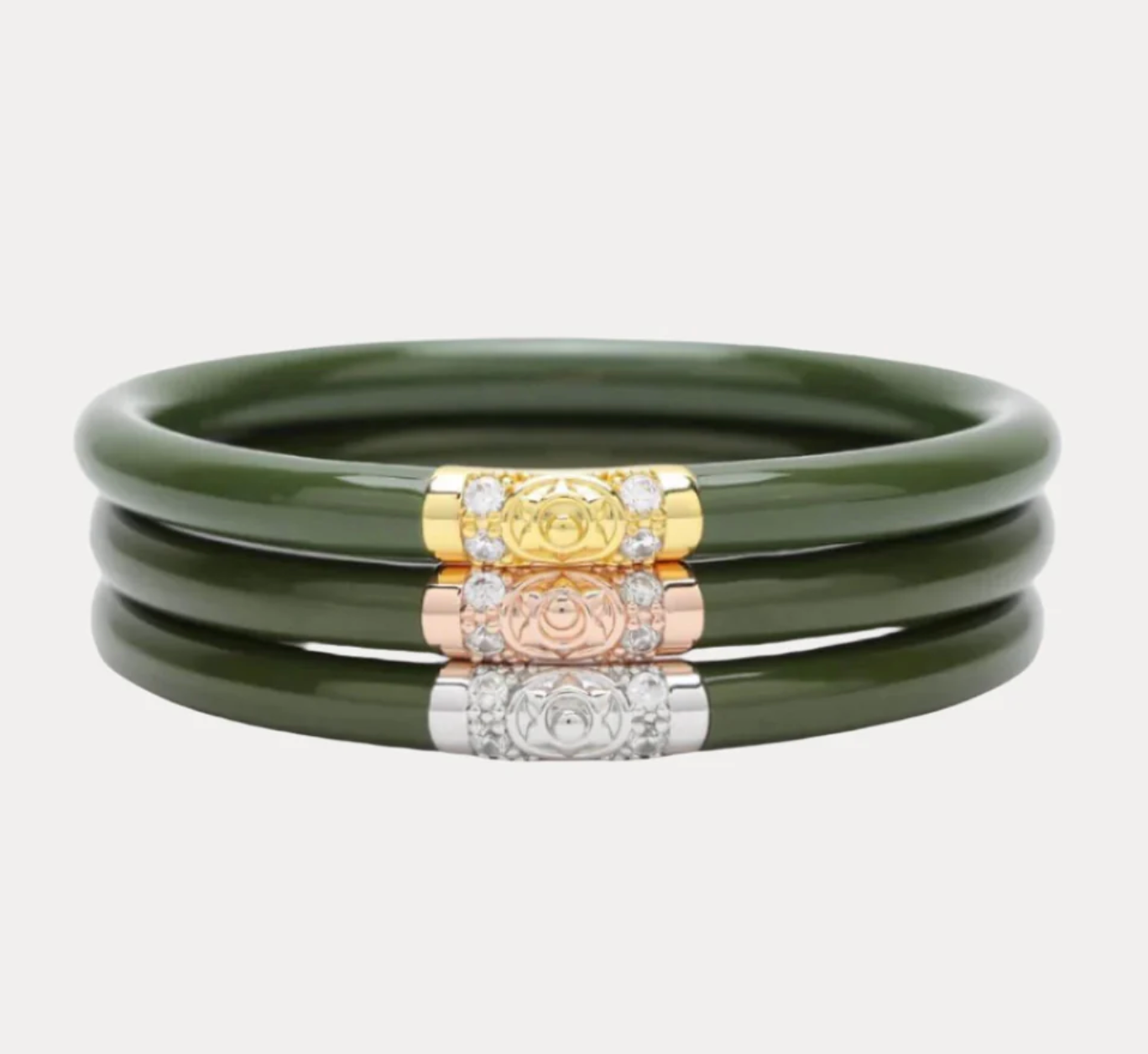 BuDhaGirl’s Jade Three Kings All Weather Bangles® (AWB®) are a tribute to a gem that is classic as it is beautiful. Jade is a symbol of wisdom through serenity.