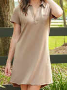 Mocha is the color of the season and makes for a delicious cotton travel dress! Discover top-rated sun protection with this versatile design that feels like your favorite lightweight sweatshirt. Our casual polo dress features a hi-lo rolled hem and is crafted from a soft and lightweight French terry cloth that continues to soften over time.