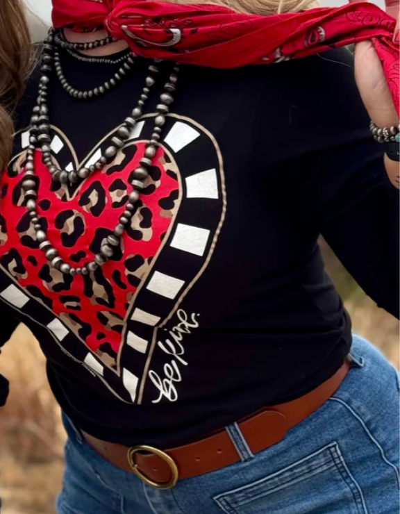 Spread kindness with every wear. This playful leopard heart tee combines a bold animal print with a sweet message, perfect for Valentine's Day or anytime you want to remind someone (or yourself) to be kind. Soft, comfortable short sleeves make it ideal for layering or wearing solo. A thoughtful gift that puts a smile on faces and warmth in hearts!