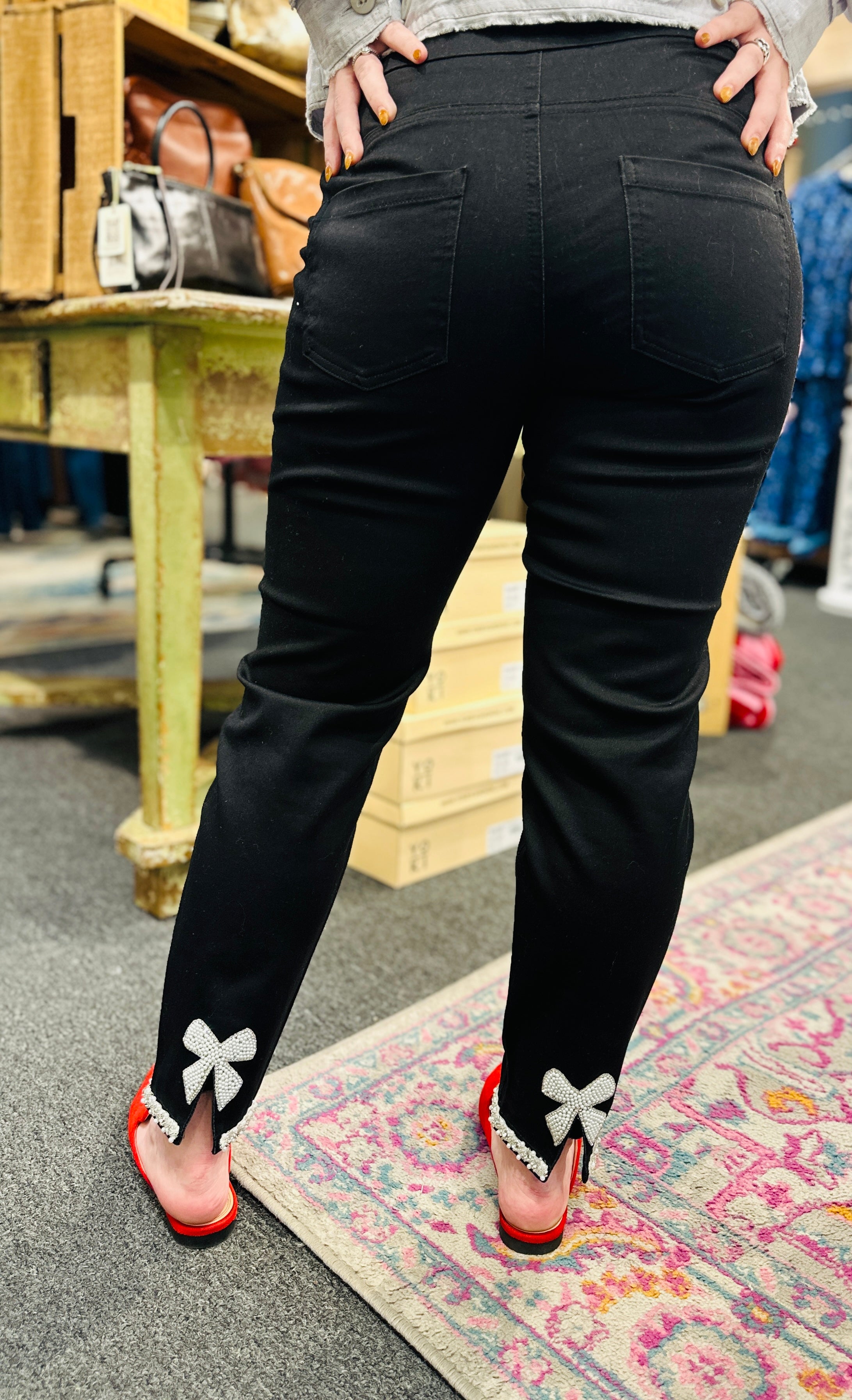 Lulu-B Black Sparkling Bows & Pearls Pants