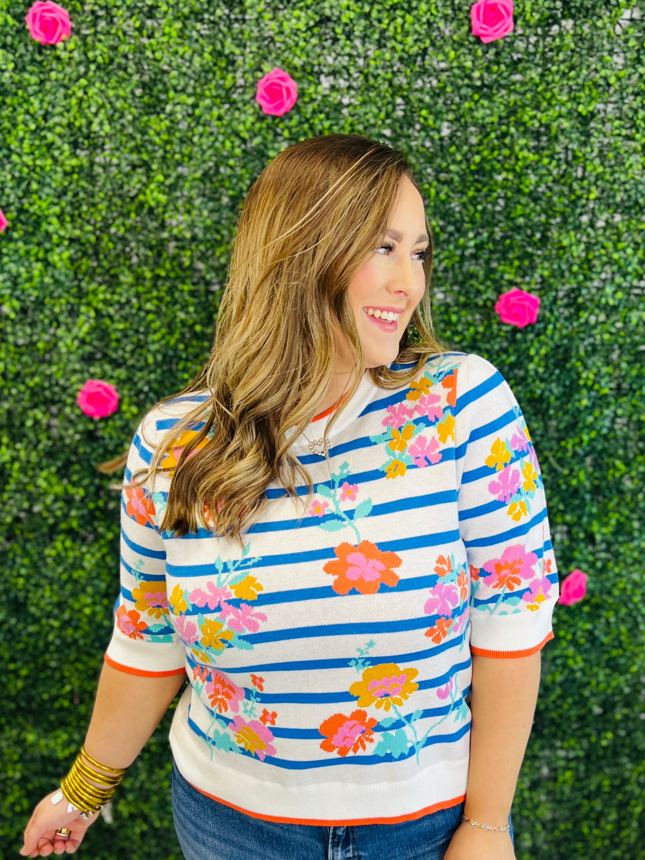 Escape to island vibes with this charming Nantucket Calling Top, where classic stripes meet cheerful floral accents for an effortlessly chic look. Perfect for cruise getaways or casual coastal adventures, this playful piece brings a flirty, carefree spirit to your vacation wardrobe. The breezy design pairs beautifully with shorts, linen pants, or a flowing skirt—ideal for days spent exploring seaside towns or relaxing by the pool. A timeless addition that captures that coveted seaside-escape feeling wherever you go!