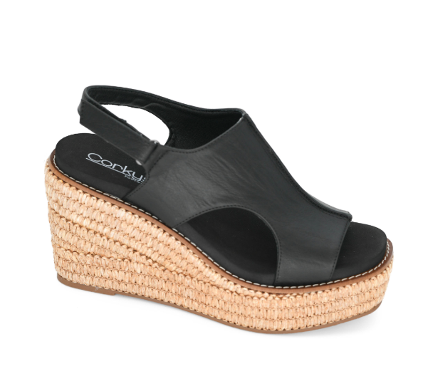 Black Smooth Freddie Wedges - Corkys