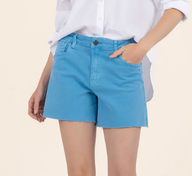- Add a vibrant touch to your wardrobe with these high-rise long inseam shorts in a stunning Bahamas blue color. Featuring a trendy raw hem, they offer a fun pop of color that’s perfect for summer days and sunny getaways.