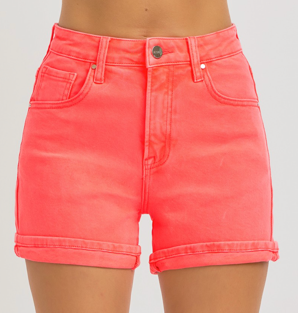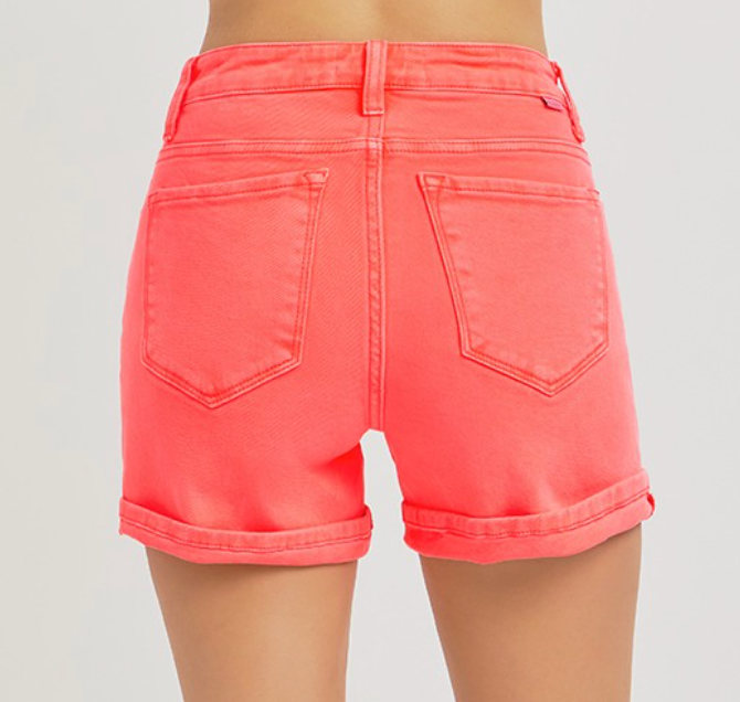 Get ready to make a statement in these high rise shorts! These eye-catching shorts feature a bright coral color, perfect for summer fun and vacation. The high rise and cuffed bottom add a touch of style to these must-have shorts.