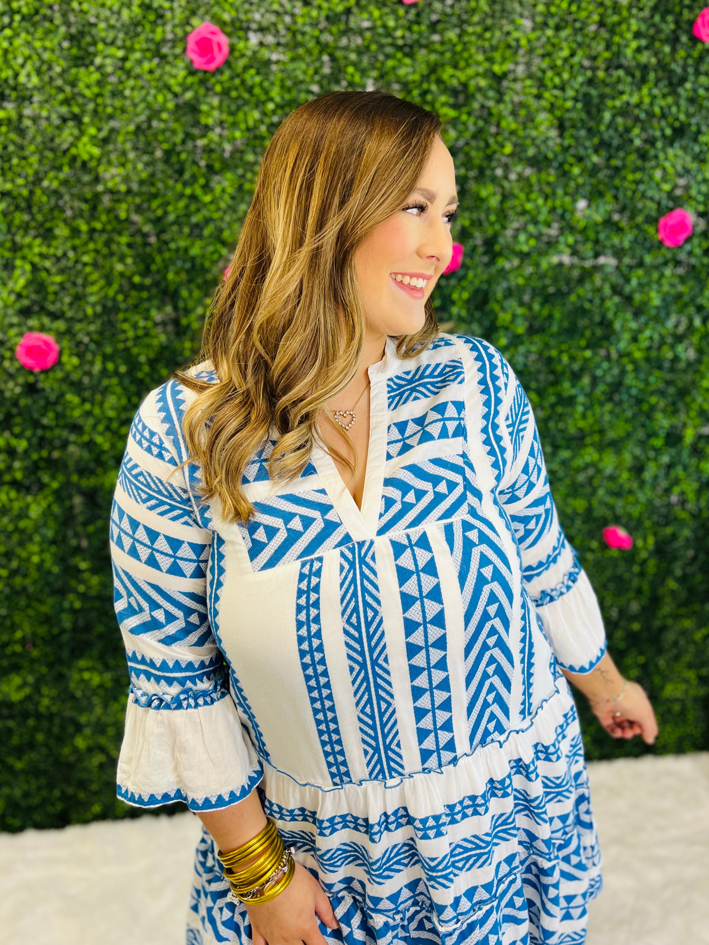 Slip into effortless elegance with this breezy blue and white dress that's perfect for your next getaway. Designed with a flirty silhouette that transitions seamlessly from beach days to date nights, this piece captures that coveted vacay-chic vibe. Whether you're strolling coastal boardwalks or enjoying an intimate dinner by the water, this dress delivers the relaxed sophistication every wardrobe needs. Pack it, wear it, love it—your summer style just got an upgrade!