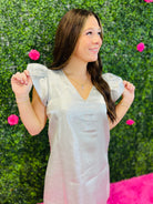 Slip into the Show Some Sparkle Dress and get ready to turn heads. This chic number is designed for those nights when you want to feel confident, fabulous, and absolutely irresistible. With its flirty silhouette and sparkling details, it's the perfect companion for date night or a girls' night out. Whether you're dancing till dawn or enjoying an intimate dinner, this dress lets your personality shine as bright as you do. Effortlessly girly and undeniably fun, it's your ticket to feeling like the best version of yourself!