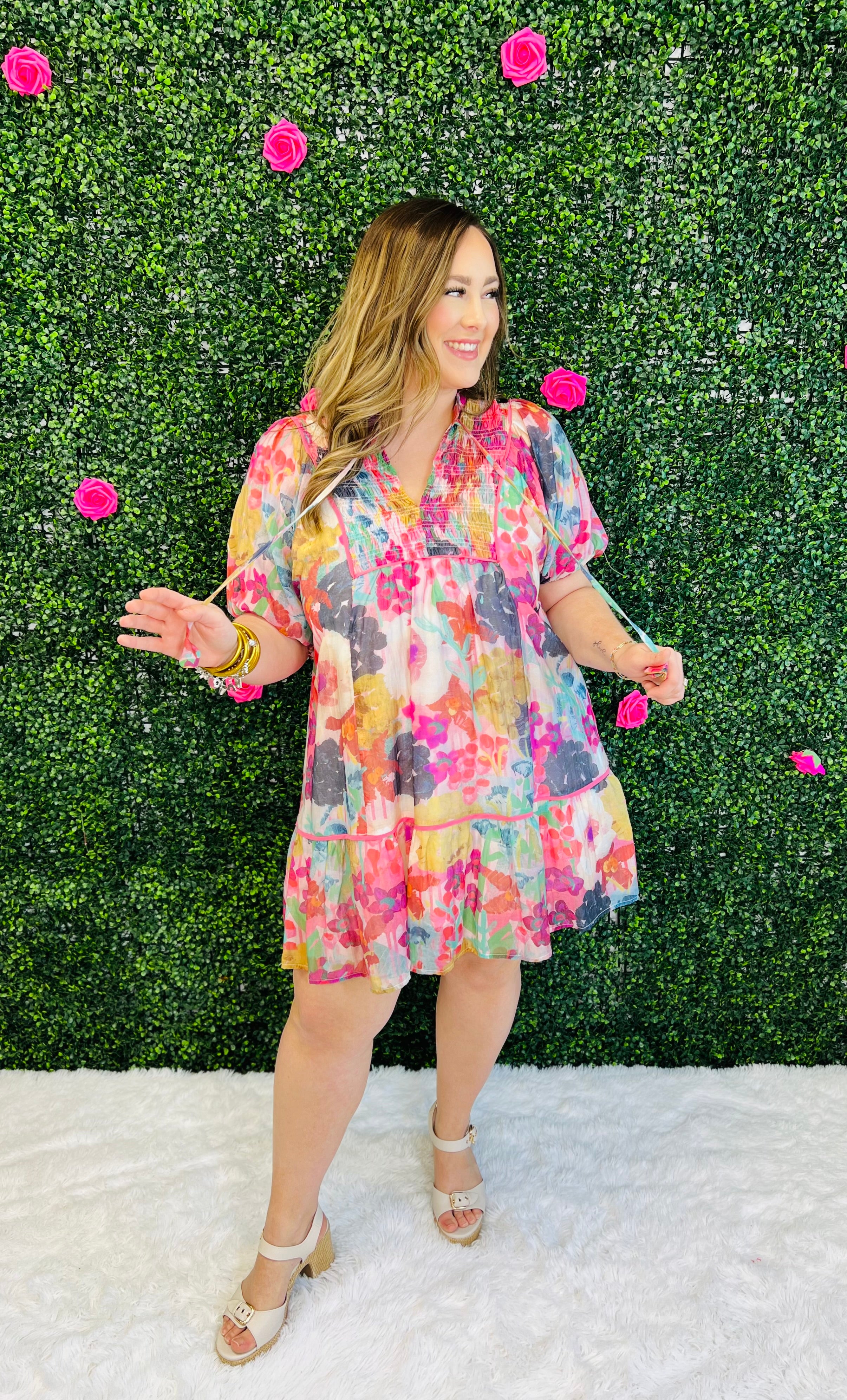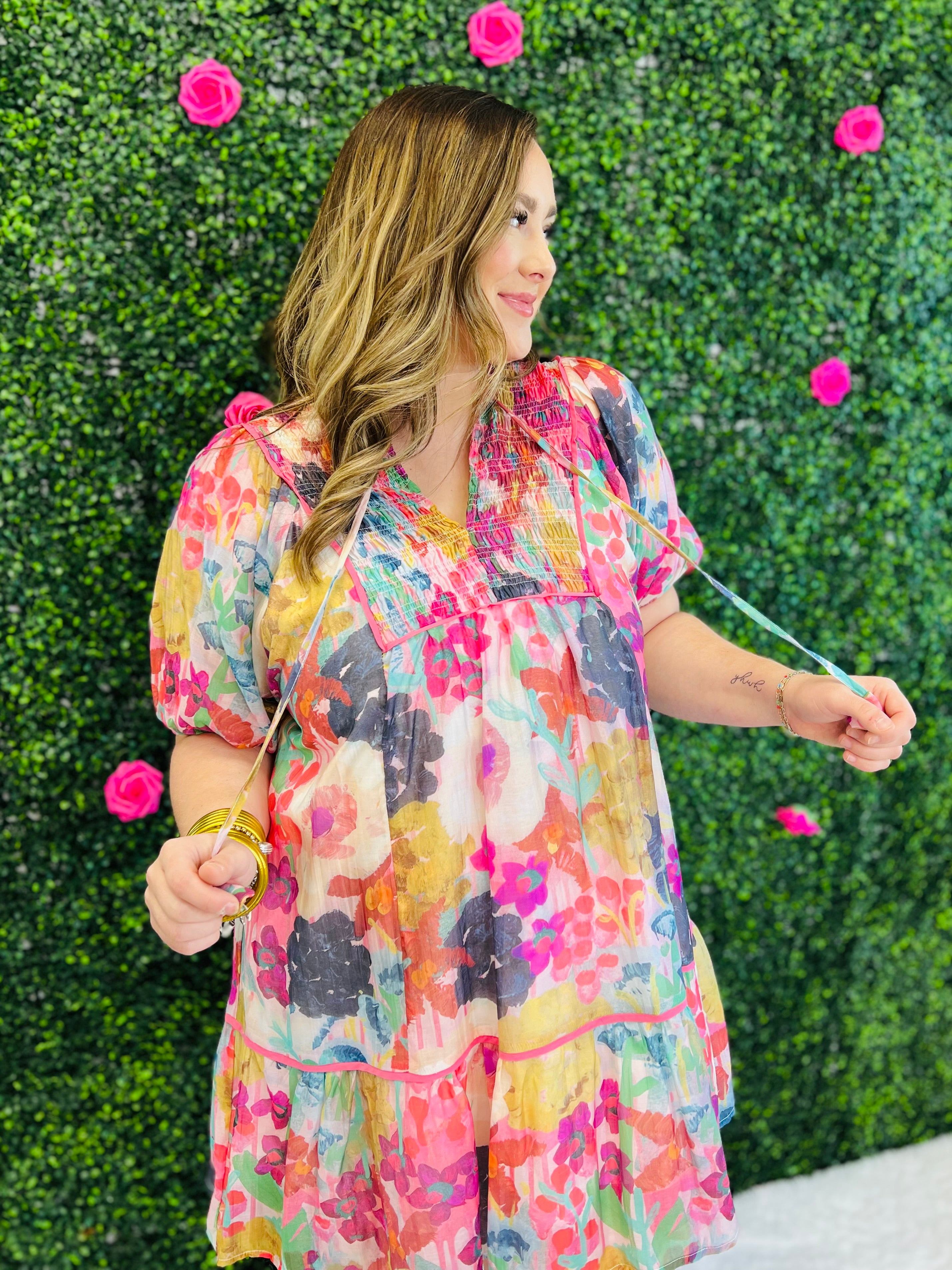 Embrace your vibrant side in this cheerful True Feelings Dress, designed to turn heads with its bold, eye-catching colors and modern silhouette. Perfect for spring gatherings, brunch dates, or any occasion calling for a confidence boost, this piece combines playful charm with sophisticated style. The bright palette and flattering cut make it an instant favorite for those who love to express themselves through fashion. Effortlessly chic and undeniably fun, it's the dress that says exactly what you're feeling!