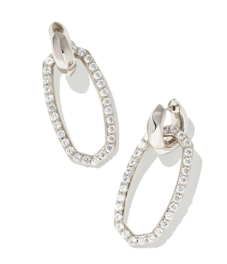Danielle Rhodium Link Earrings in White Crystal - Kendra Scott