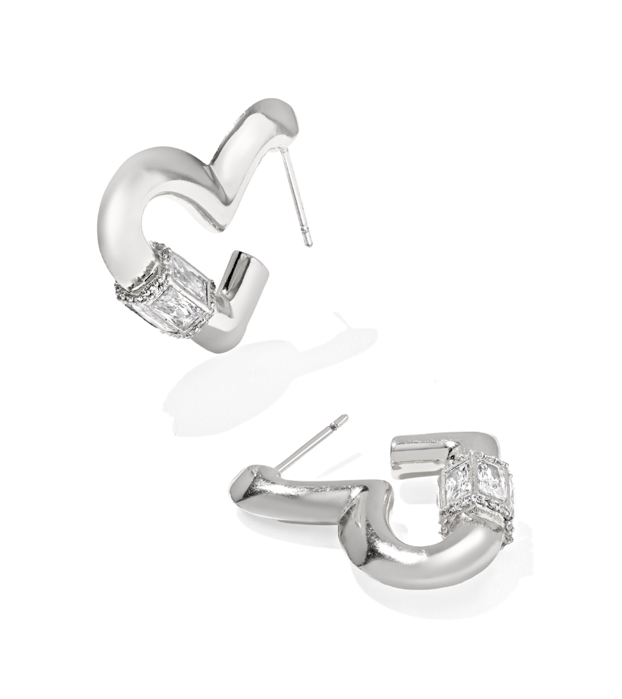 Emery Heart Silver Hoop Earrings in White CZ - Kendra Scott