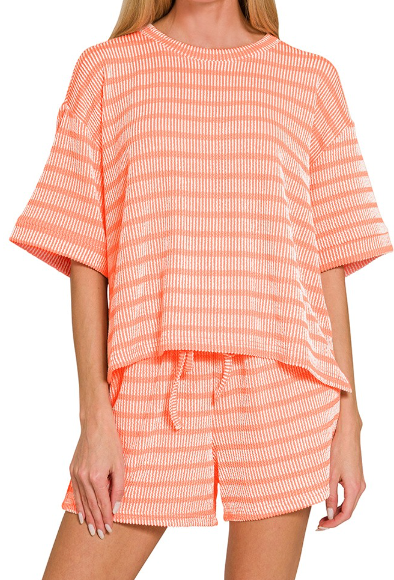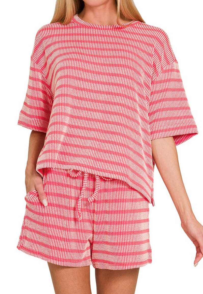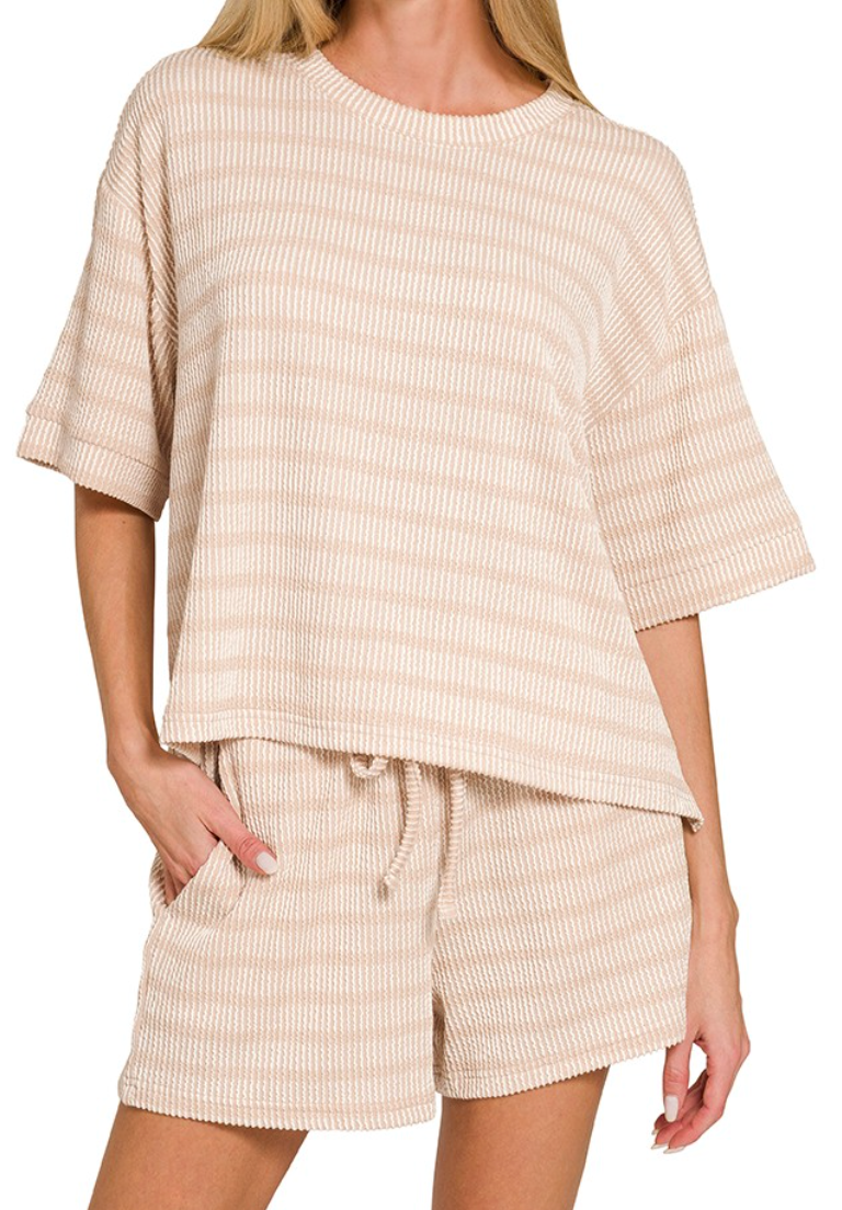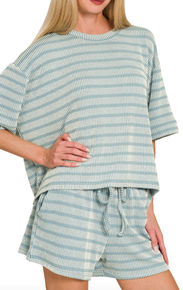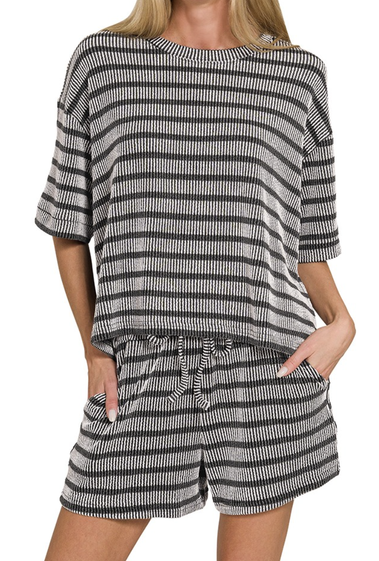Slip into comfort with the Been Too Long Ribbed Set—your new go-to for lazy mornings and cozy nights in. Featuring soft ribbed fabric with classic stripes, this relaxed-fit lounge set moves seamlessly from bedroom to brunch. The versatile design pairs effortlessly with sneakers or slippers, making it perfect for those days when comfort is non-negotiable. Because sometimes the best outfit is one that feels like a warm hug!