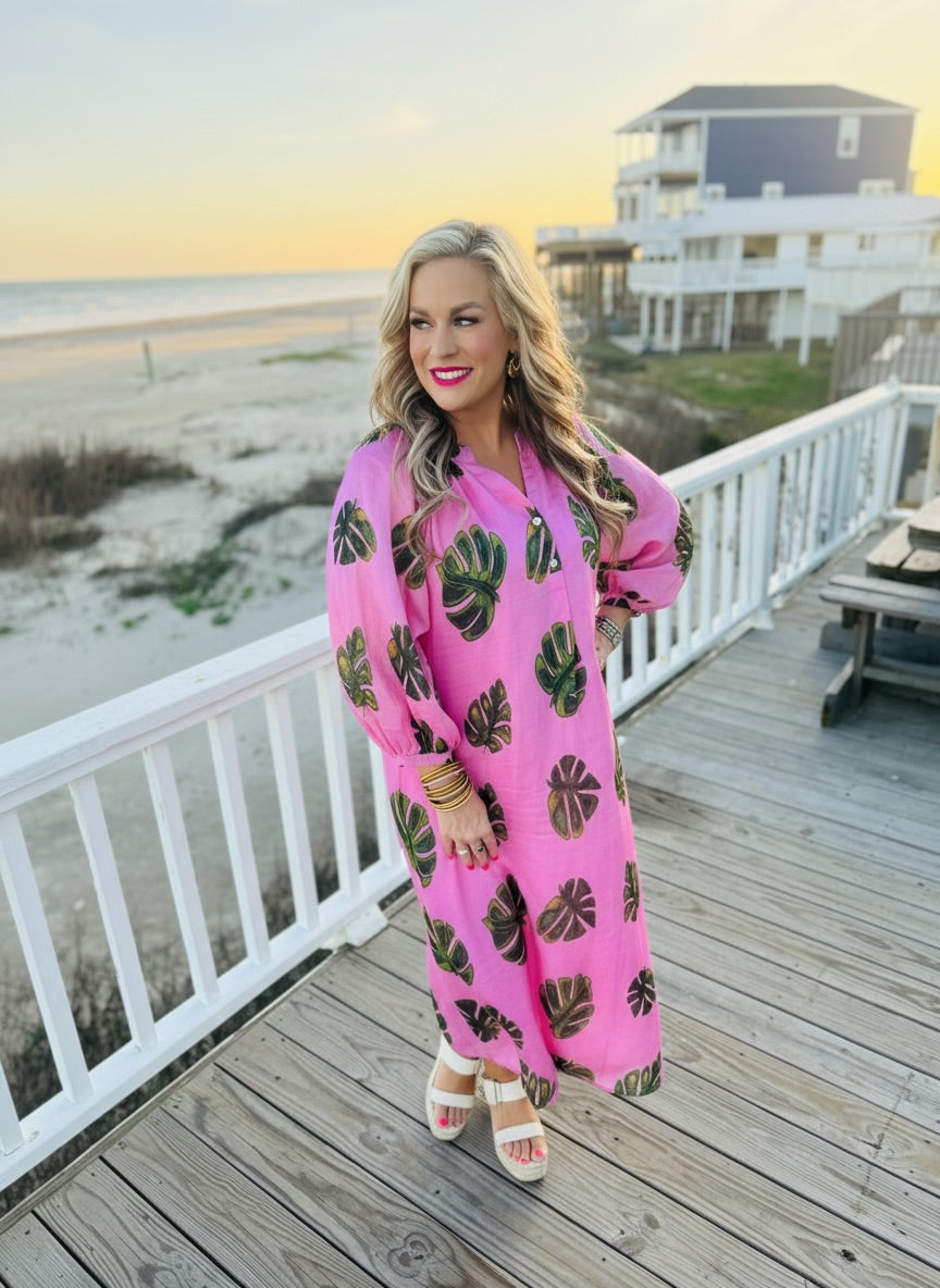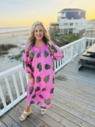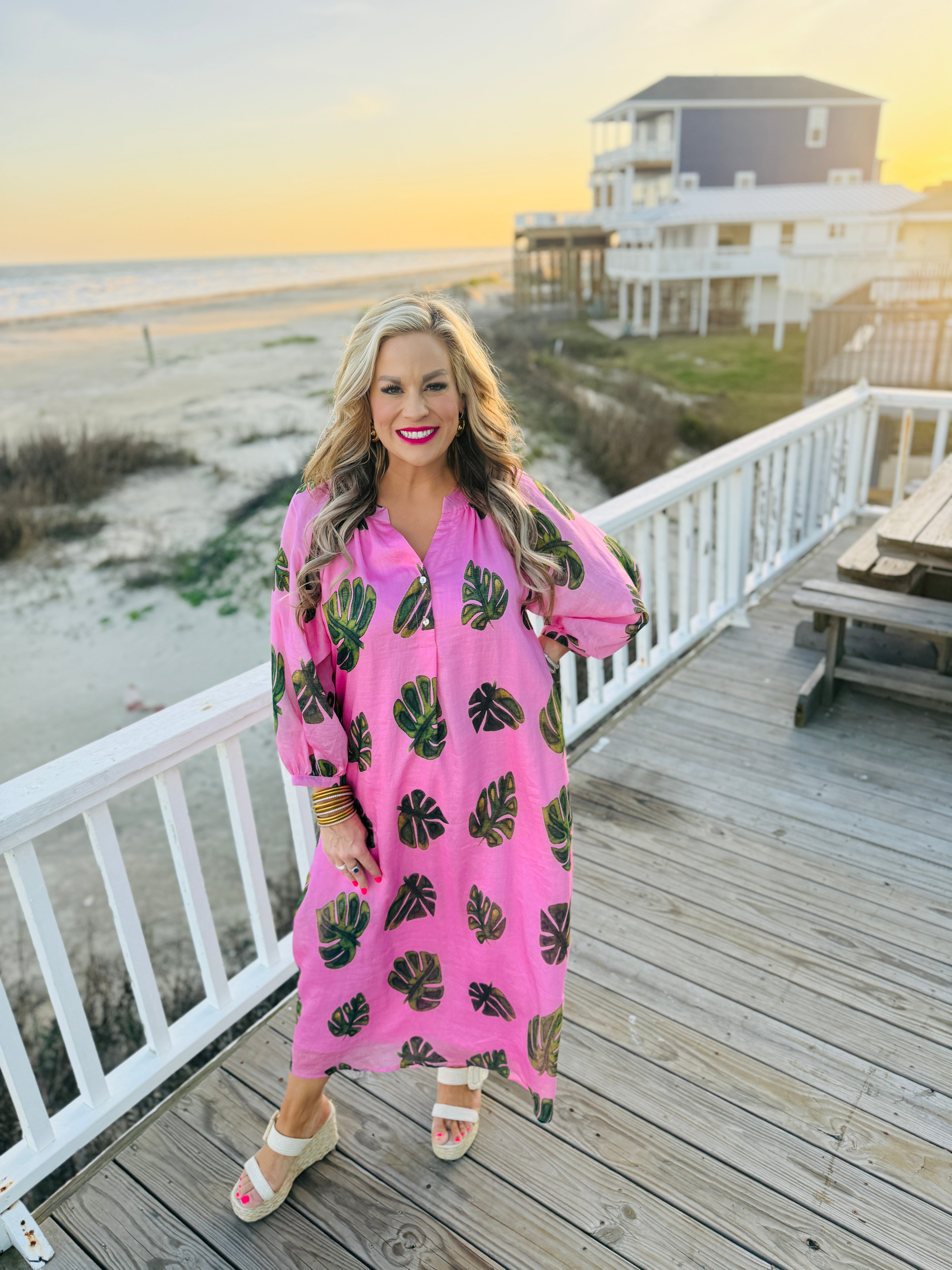 Vacay vibes, activated! 🌴💗 The Palm Springs Dream Dress features a bold palm print against the prettiest pink backdrop for the ultimate resort-ready look. With its flowy silhouette and easy, relaxed fit, she’s made for beach strolls, brunch dates, and soaking up sunshine in style.