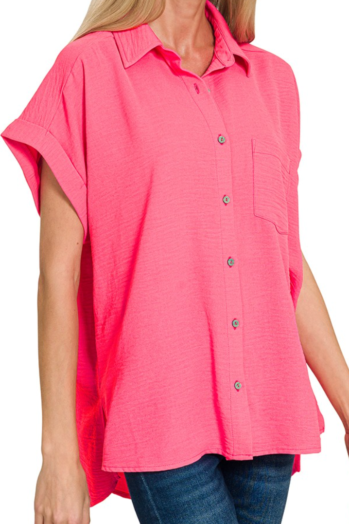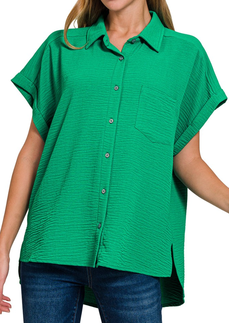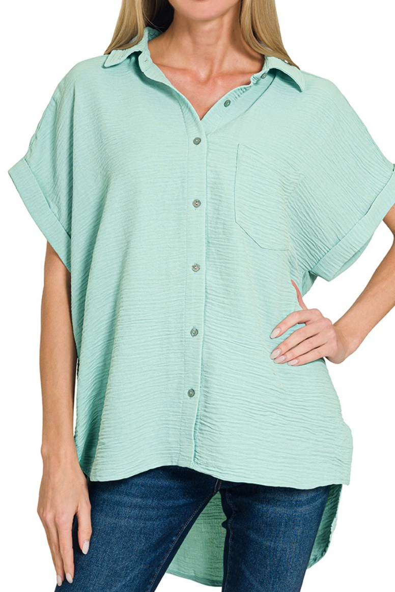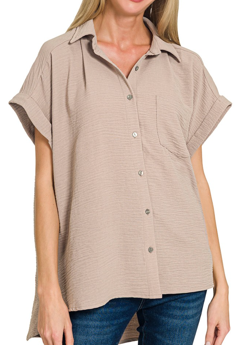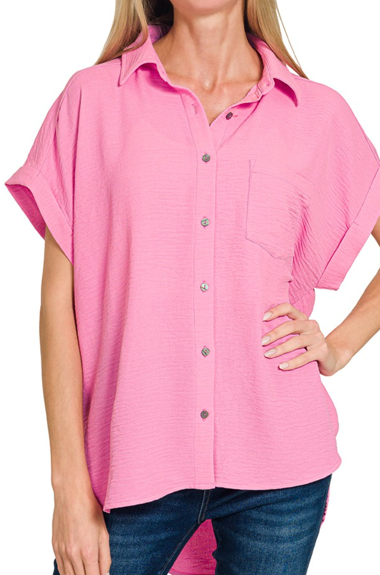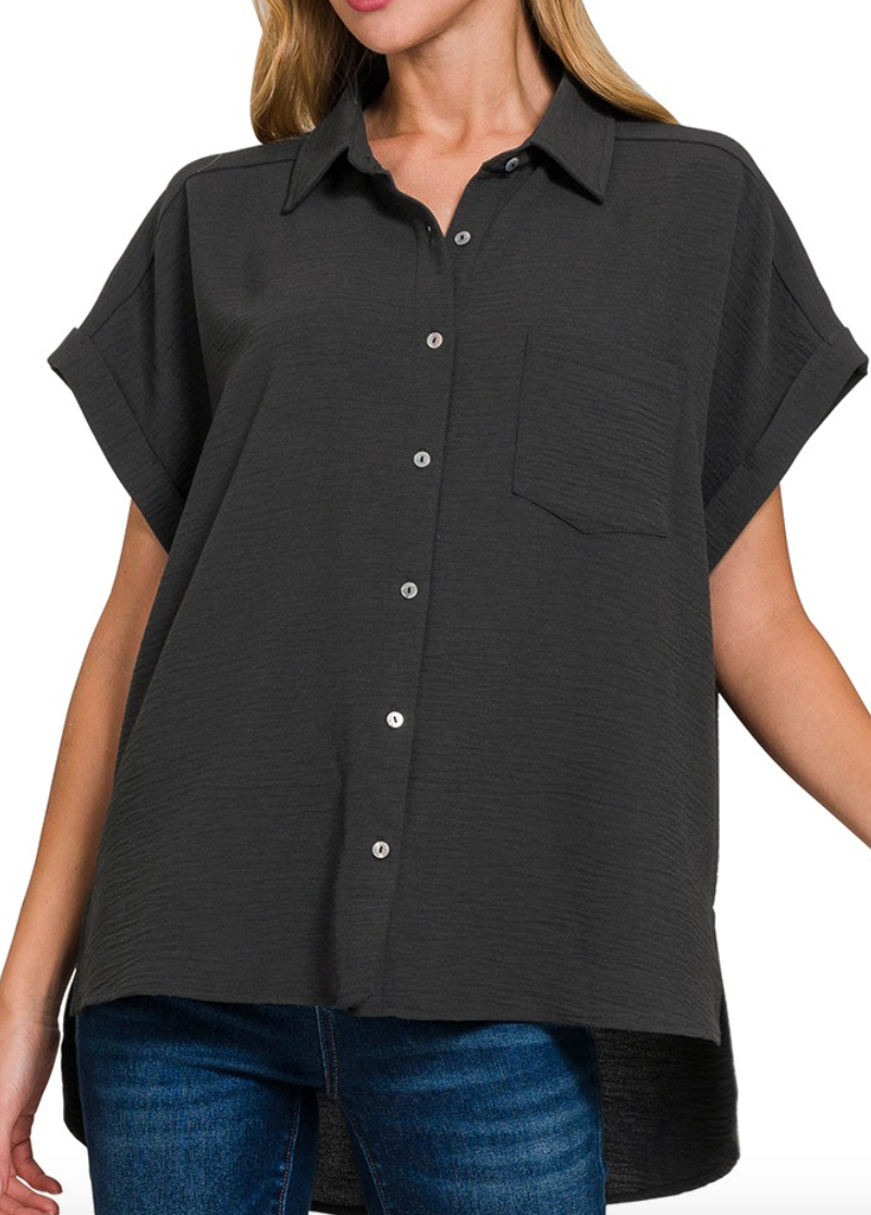 Effortlessly chic and undeniably comfy, the Gone Again Top features a woven airflow fabric that keeps you cool while looking put-together. With its flattering cut and playful girly vibe, this button-up is the versatile piece your wardrobe's been waiting for—dress it up for brunch or down for casual weekends. A go-to favorite that works harder than it looks!