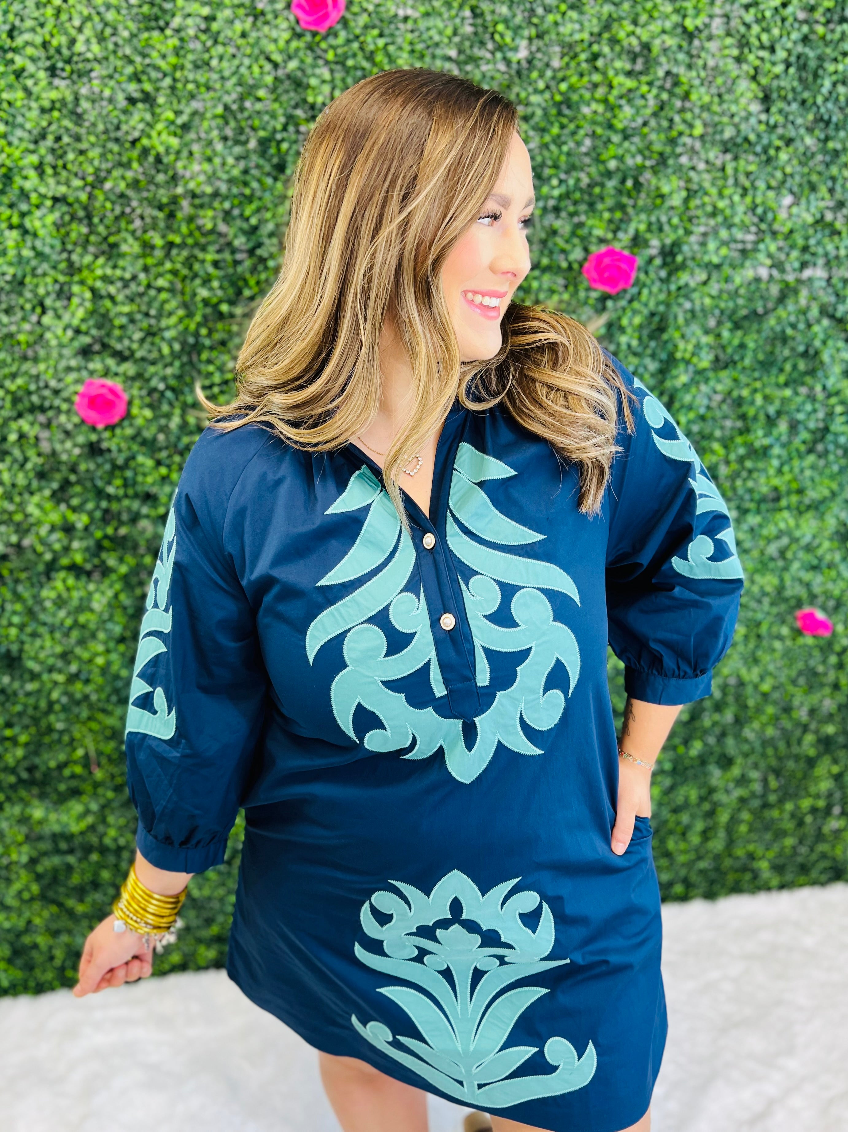 Make a statement in this chic navy dress that's as versatile as your social calendar. Whether you're heading out on a romantic date night or gathering with your girls for an unforgettable trip, this flirty number has you covered. The sophisticated silhouette strikes the perfect balance between playful and polished, letting your personality shine through. Designed for those moments when you want to feel confident and fabulous, this dress pairs effortlessly with heels or flats. Your go-to piece for any occasion that calls for a little extra charm!