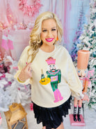 Crack open the holiday spirit in this chic Nutcracker Server Sweatshirt! Perfect for festive celebrations, this playful piece channels champagne-fueled elegance with nutcracker-inspired flair. Whether you're serving up holiday cheer or celebrating in style, this sweatshirt brings sparkle and sass to your seasonal wardrobe. Cozy enough for Christmas gatherings, bold enough to make a statement. Cheers to looking fabulous while spreading festive joy!