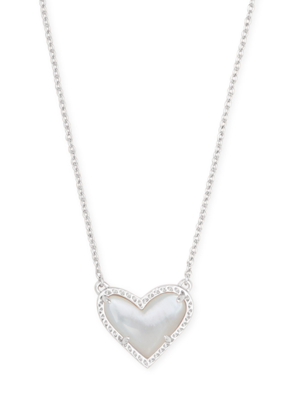 Ari Silver Heart Short Pendant Necklace in Ivory Mother of Pearl - Kendra Scott
