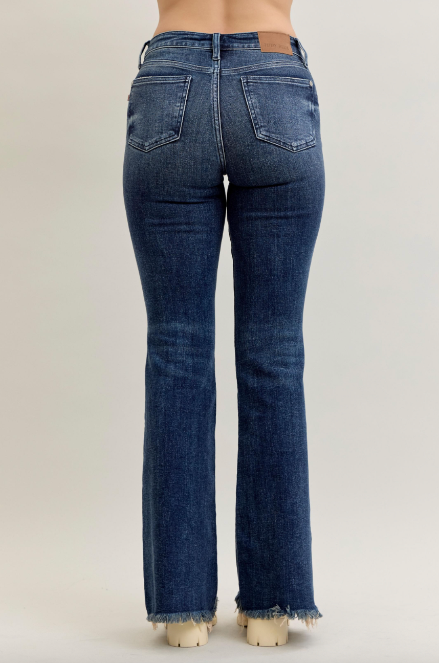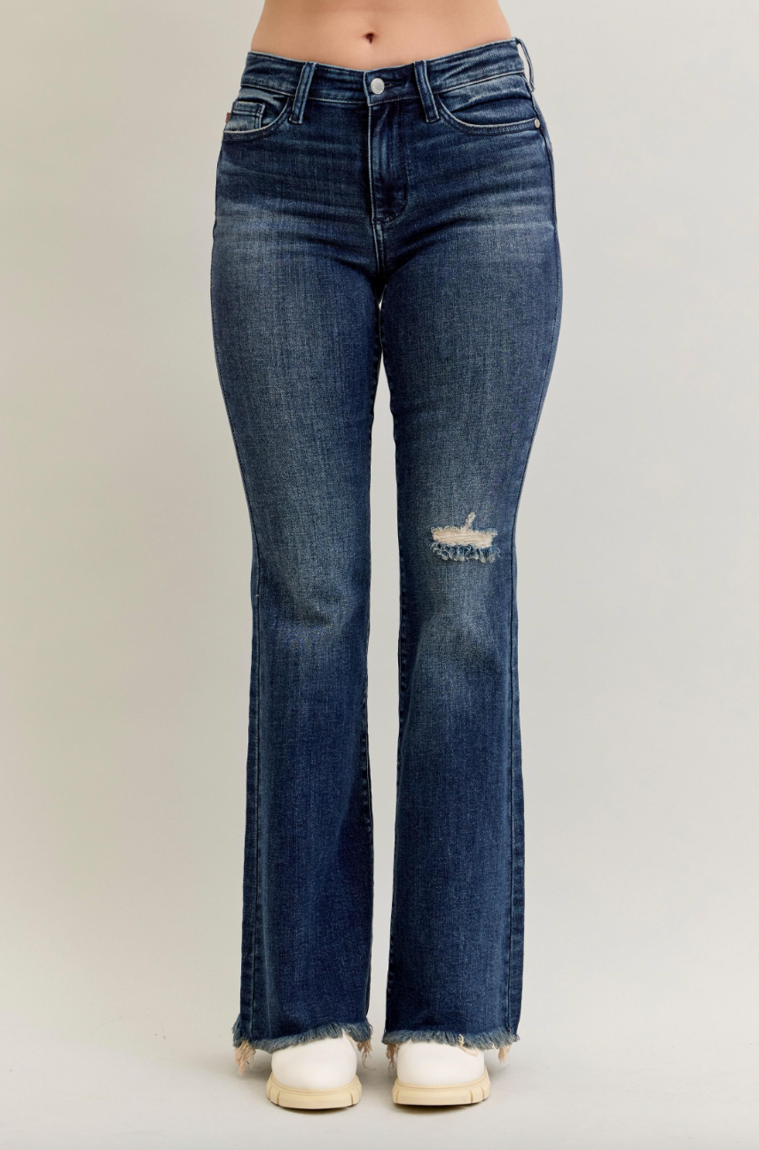 Your new statement denim has arrived! These Mid-Rise Flare Destroy & Fray Hem Jeans by Judy Blue bring the perfect blend of laid-back edge and flattering style. Designed with a mid-rise fit that hugs in all the right places, the flare silhouette creates a leg-lengthening look while the destroyed details and frayed hem add just the right amount of attitude. Crafted with Judy Blue’s signature stretch denim, these jeans offer the comfort you love with a trendy finish that’s perfect for dressing up or keeping casual.