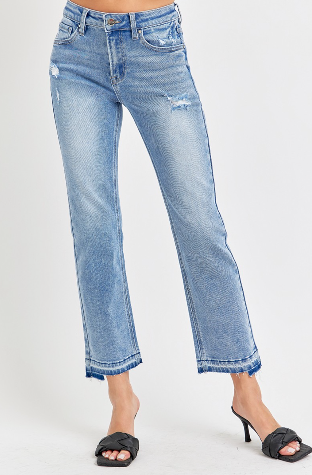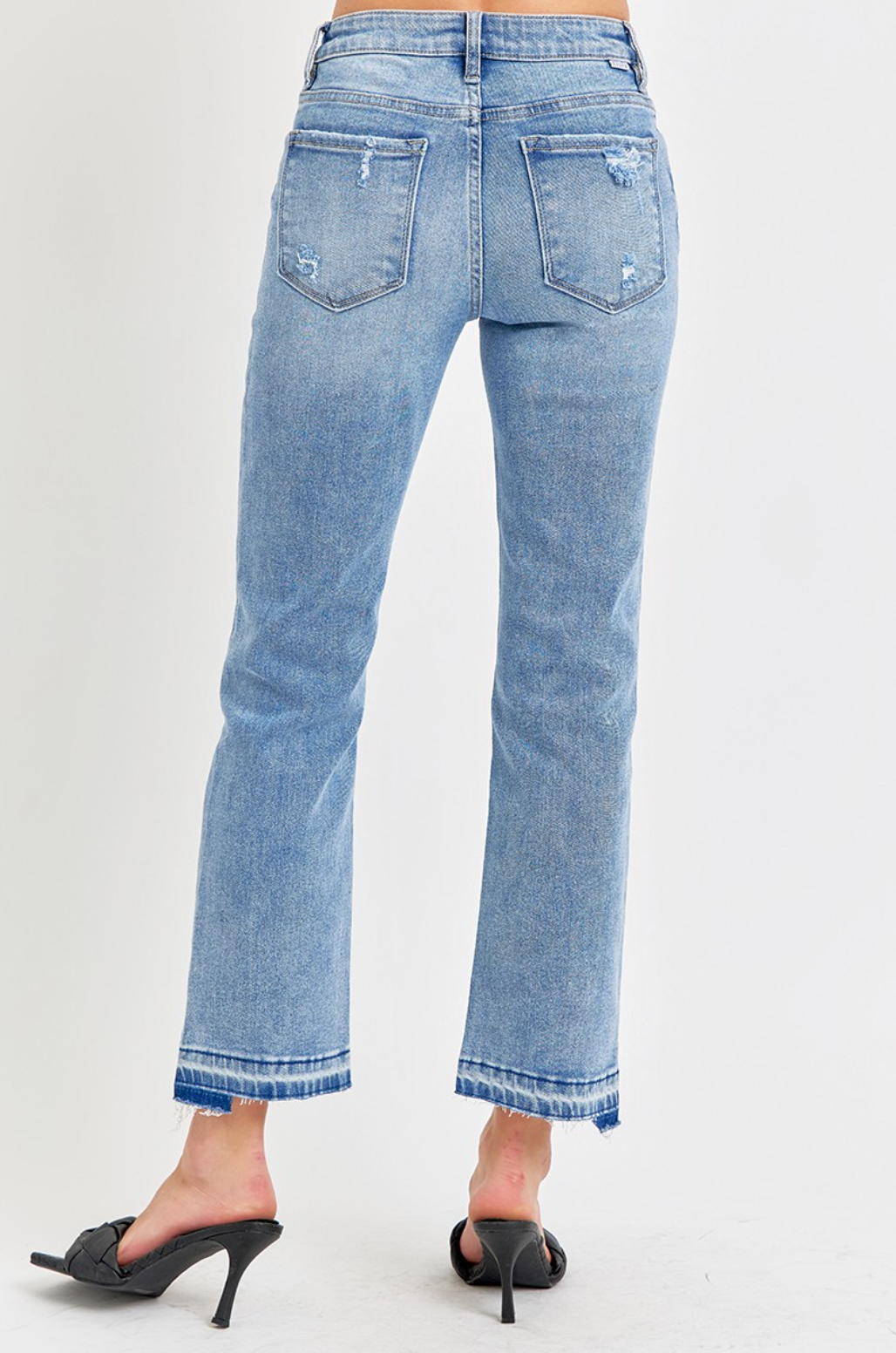 Mid Rise Ankle Straight Uneven Hem Jeans - Risen