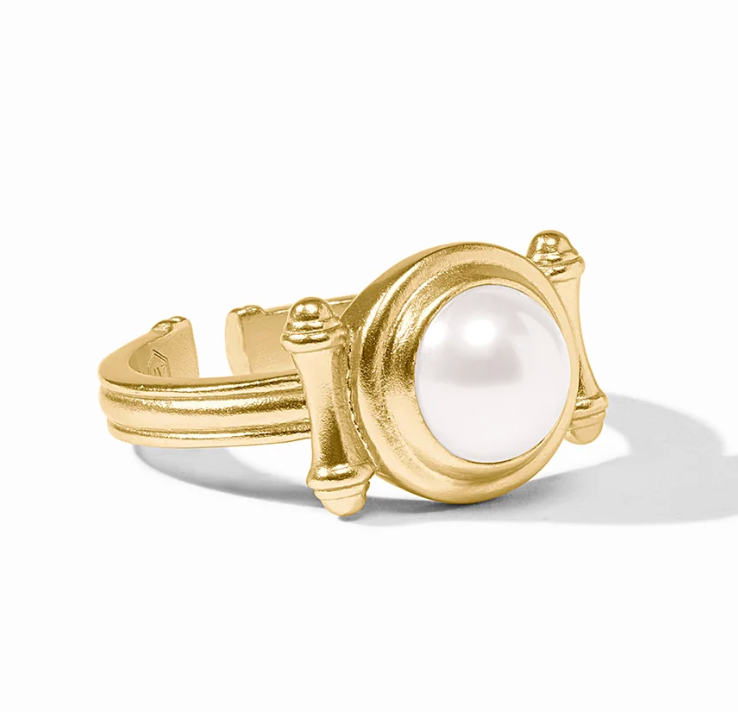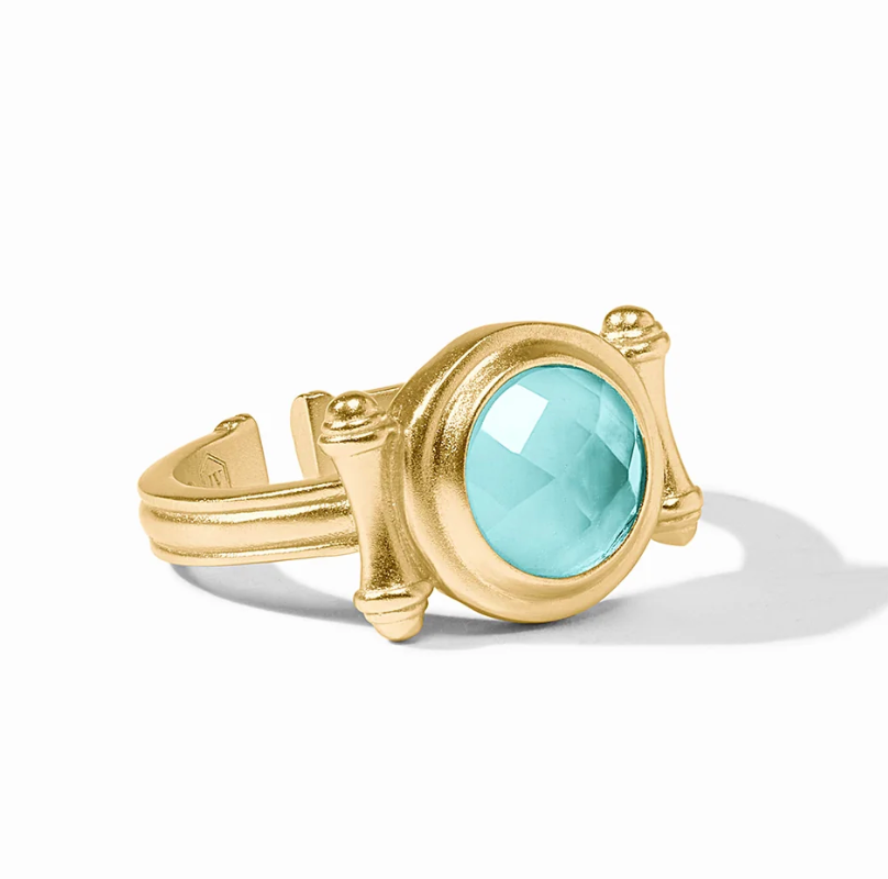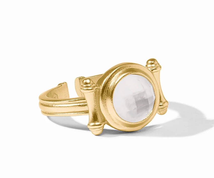 A resplendent domed gemstone flanked by petite pieces of golden bamboo lends this ring an air of contemporary elegance informed by classic designs.