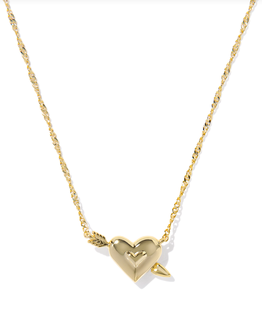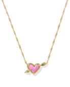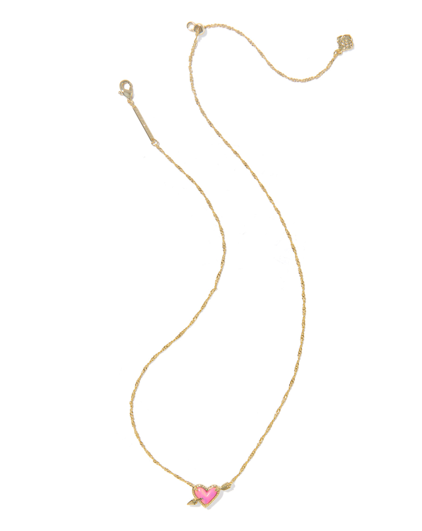 Ari Heart Gold Arrow Short Pendant Necklace in Pink Opalescent Resin – Kendra Scott