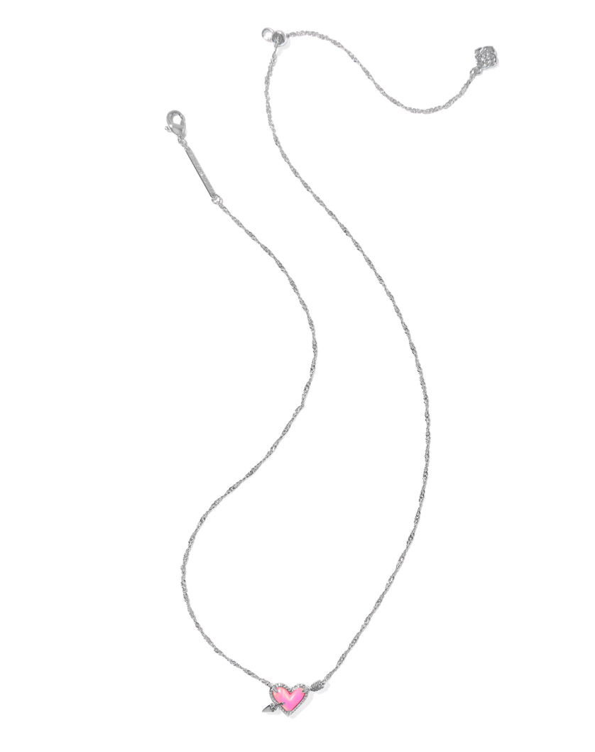 Ari Heart Silver Arrow Short Pendant Necklace in Pink Opalescent Resin – Kendra Scott