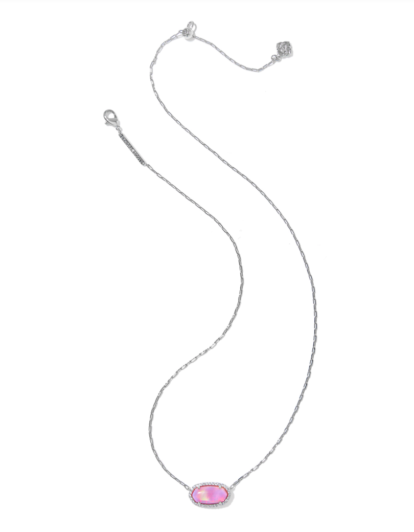 Elisa Silver Pavé Frame Short Pendant Necklace in Pink Opalescent Resin – Kendra Scott