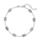 The Emilie Silver Link Bracelet in Platinum Drusy is designed with mini, classic KS shapes linked by a shimmery metallic satellite Chain. Layer for a little extra something in your minimalist stack!