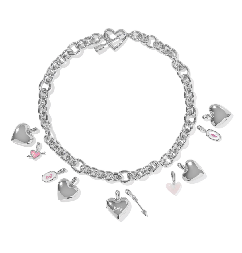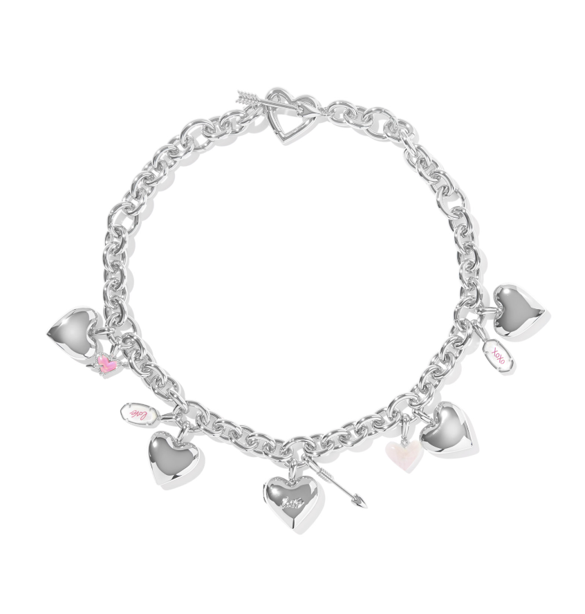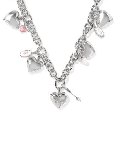 Sweet and stylish, the Jayna Silver Statement Necklace features 13 interchangeable charms (including our Ari Heart Arrow and iconic Elisa shapes!) on a trendy, oversized chain. With a heart and arrow-shaped toggle closure that can also be worn as a focal point, this necklace is full of darling details youÕll be obsessing over.