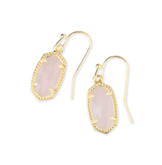 Lee Gold Drop Earrings in Rose Quartz - Kendra Scott