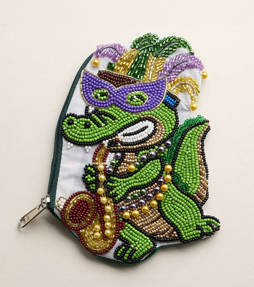 Mardi Gras Jester Alligator Beaded Mini Pouch